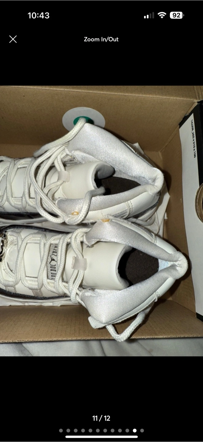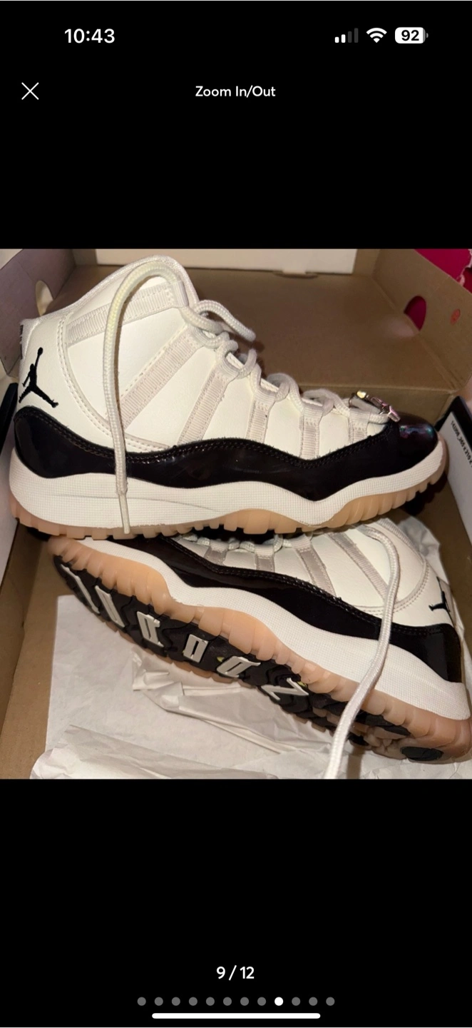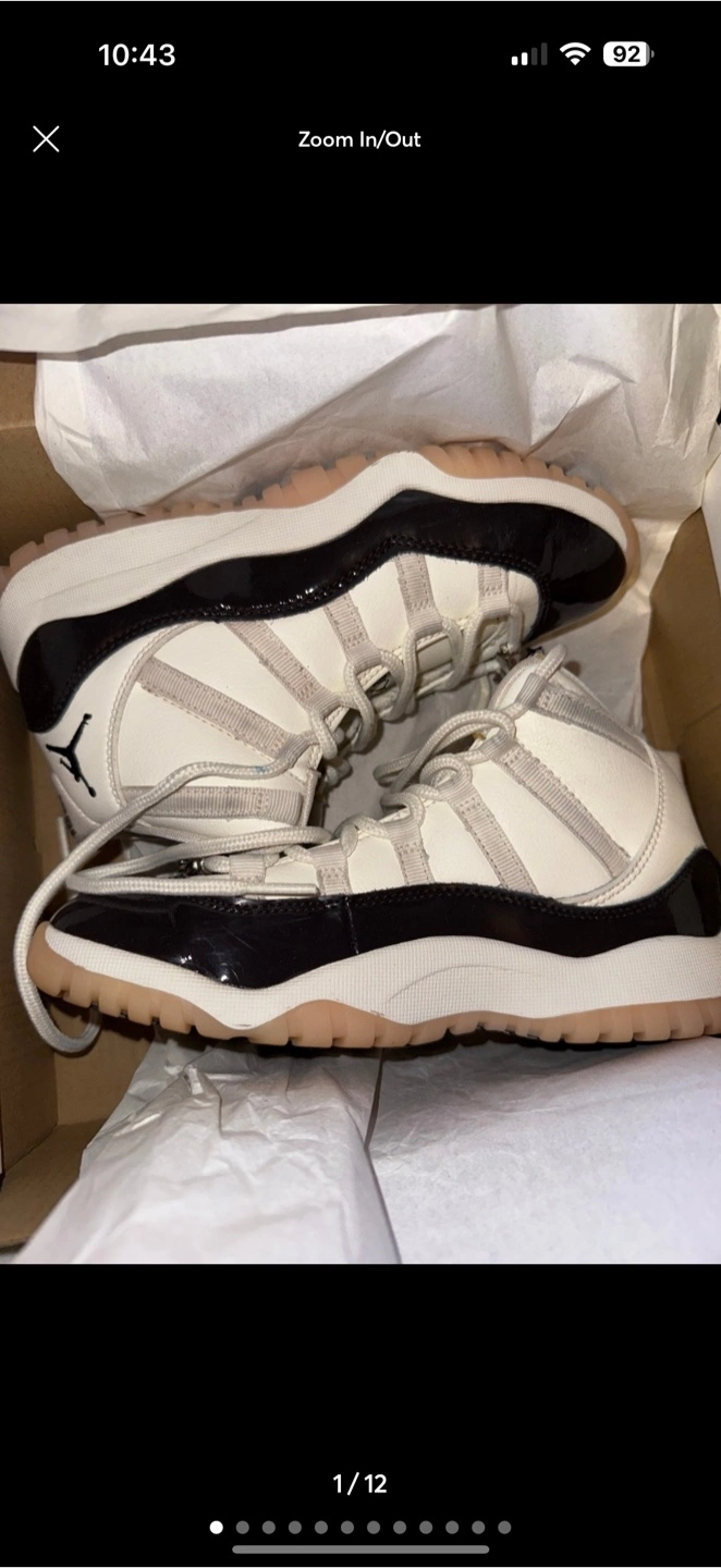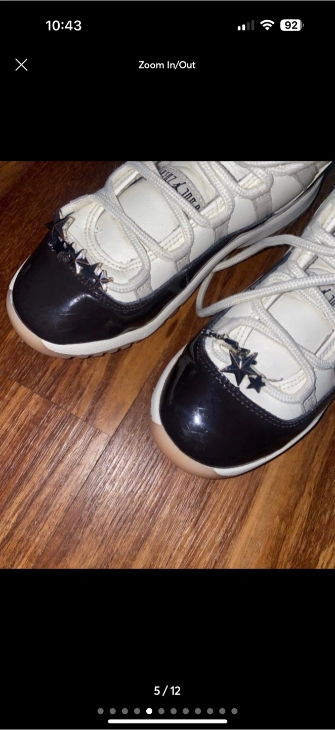 Air Jordan 11 Retro Low Concord. Cream and black colorway. Features added star accents. Comes in original box.