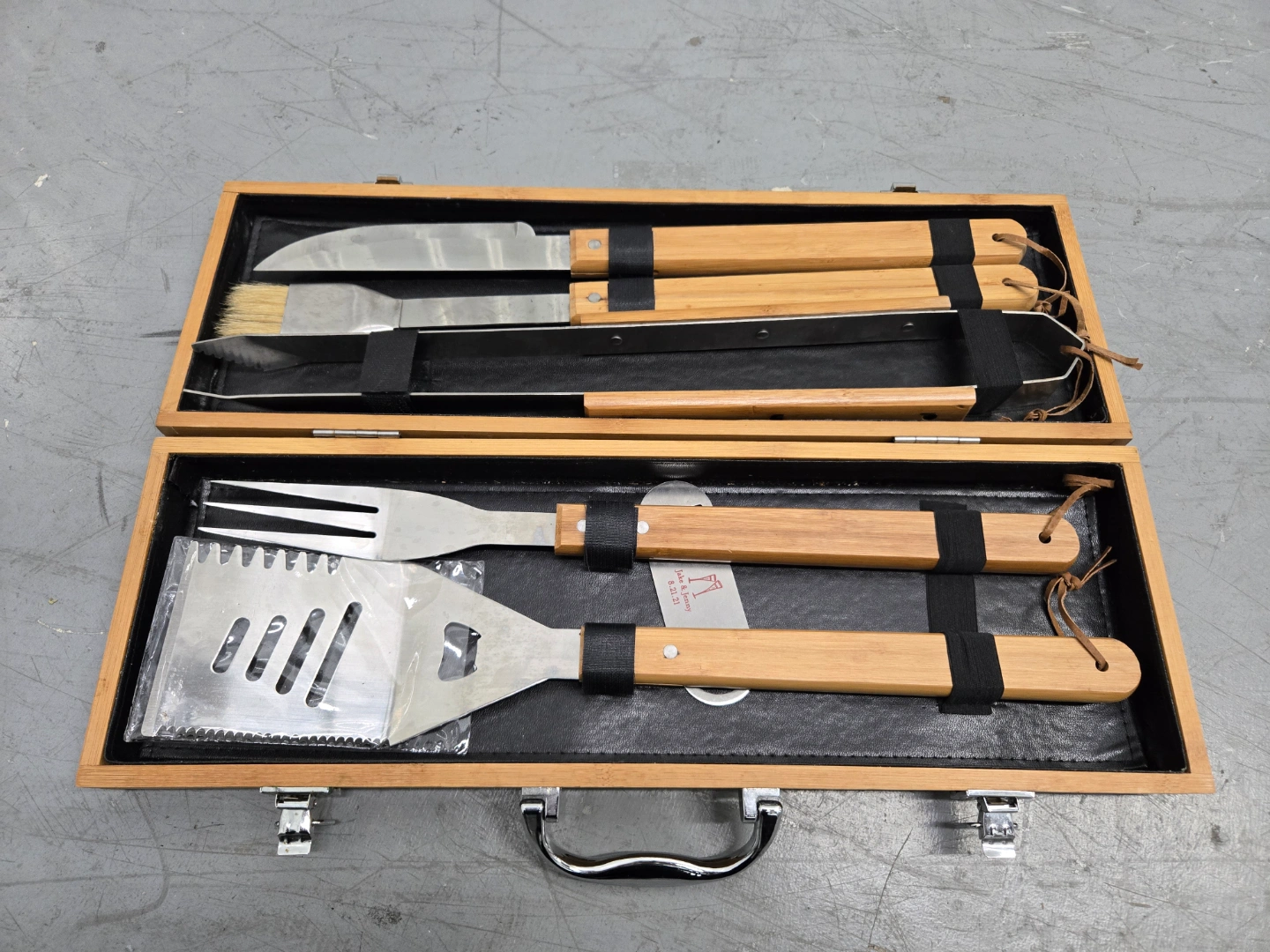 Bamboo Grill Tool Set - 6 Piece BBQ Utensil Kit with Carry Case