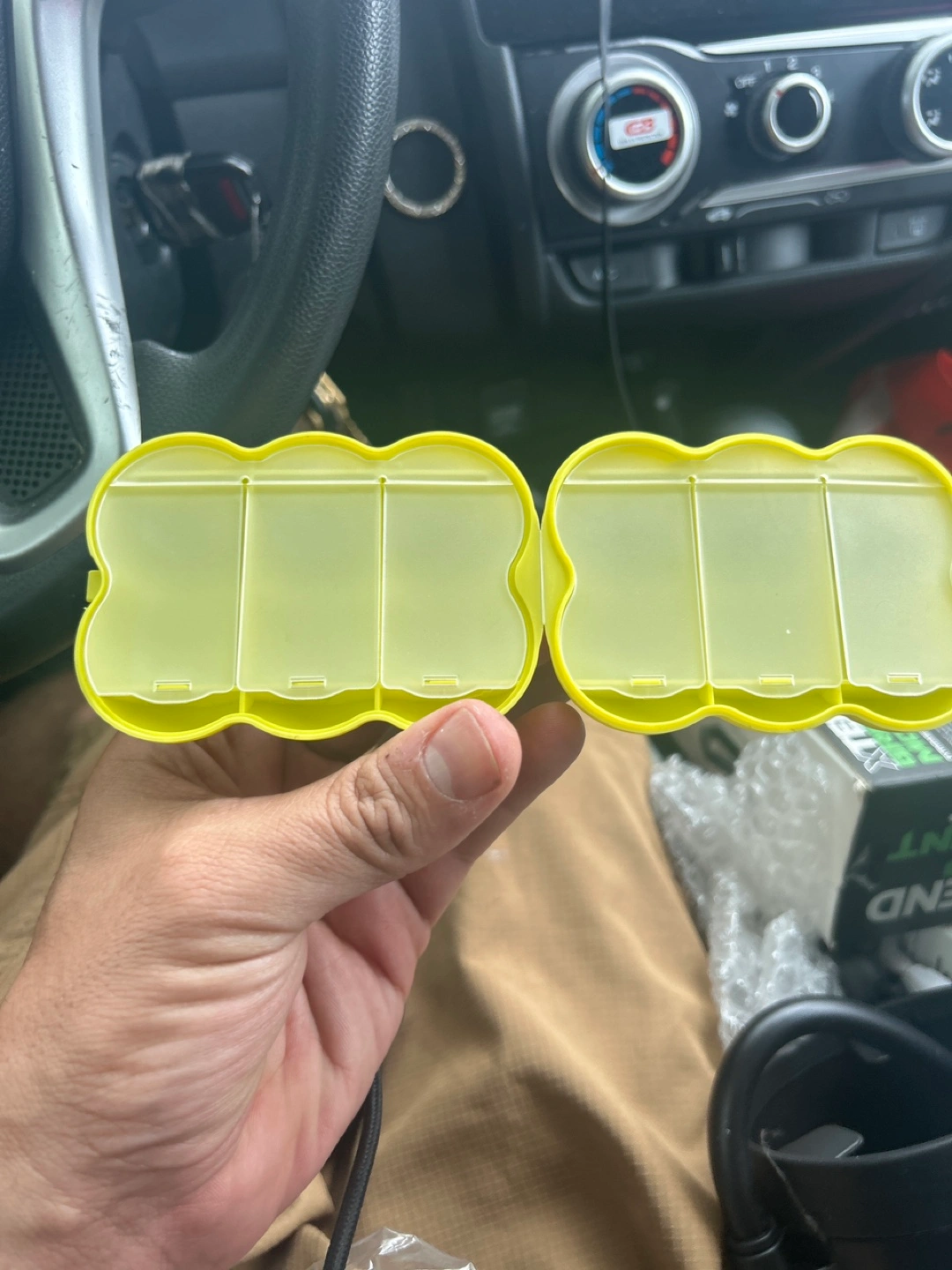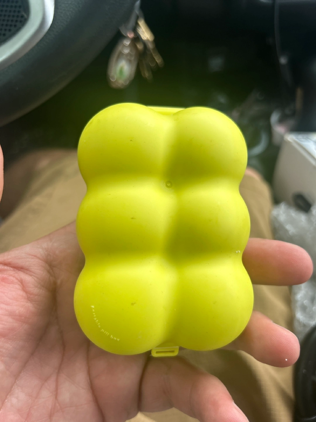 234Pill holder and organizer Lightweight plastic. Yellow color.