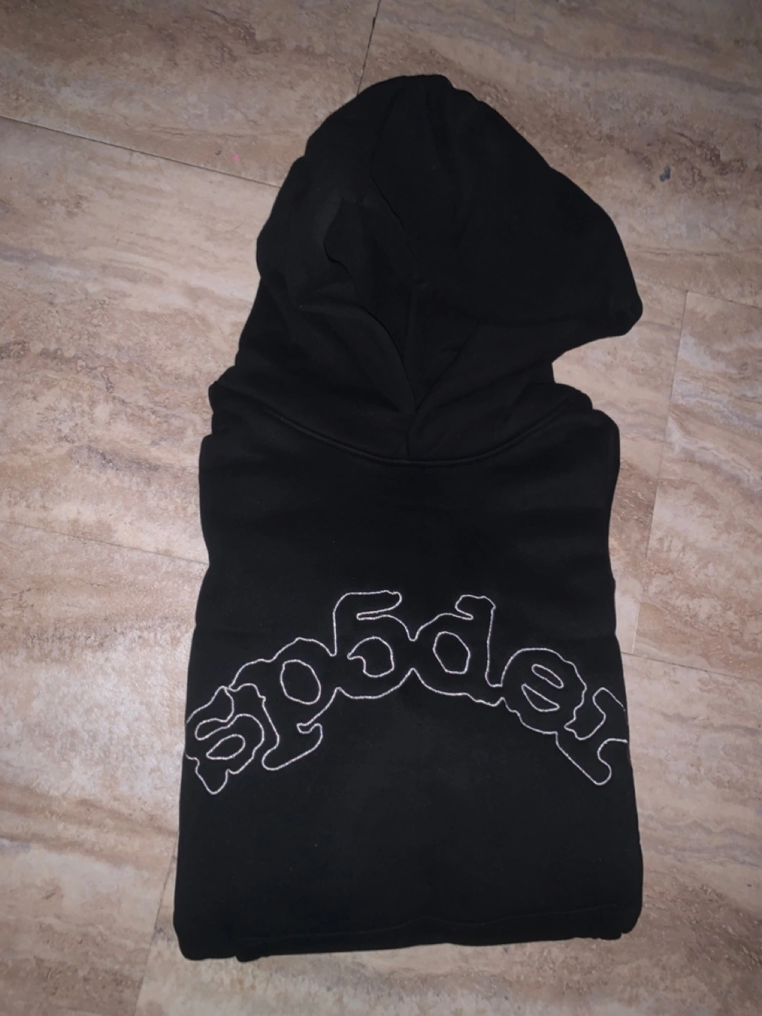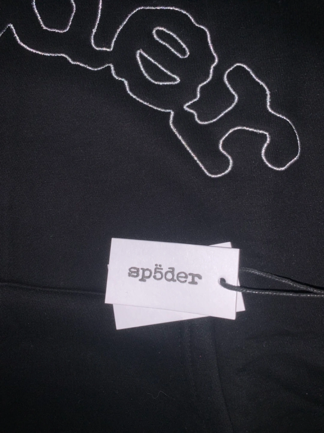 Black Spöder hoodie. Features a large, arched logo embroidered on the front. Long sleeves, drawstring hood. New with tags.
