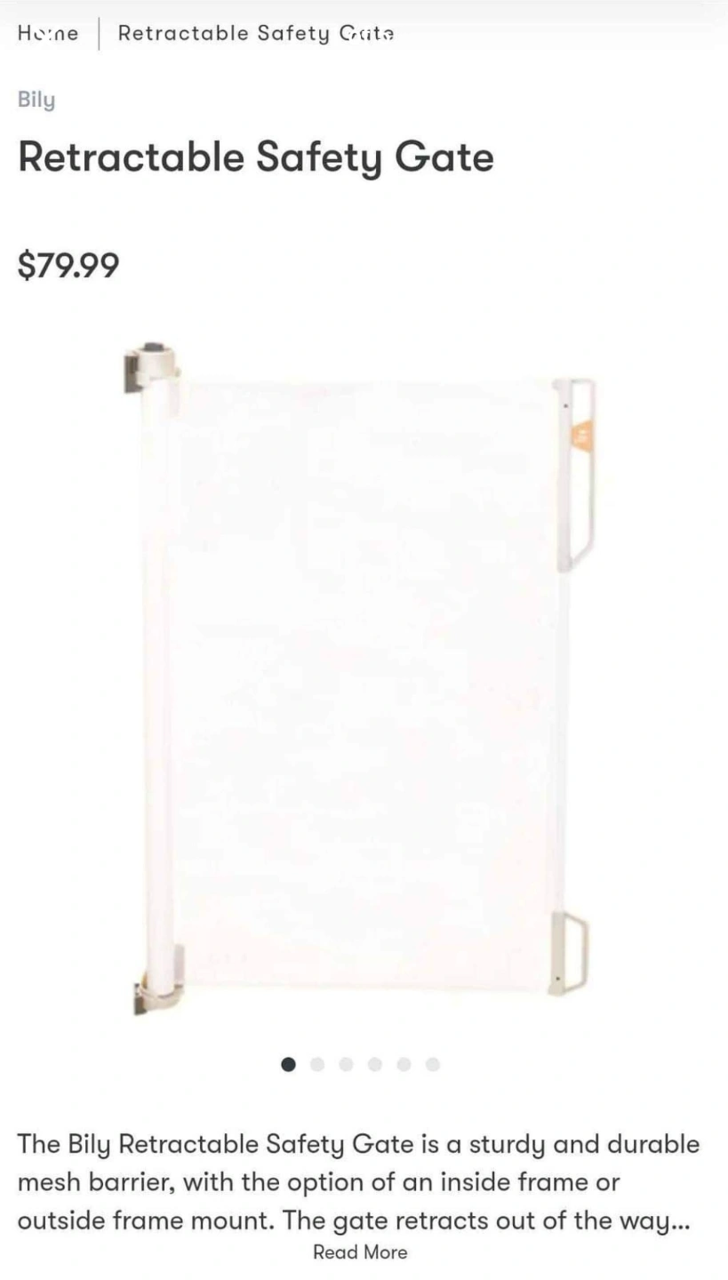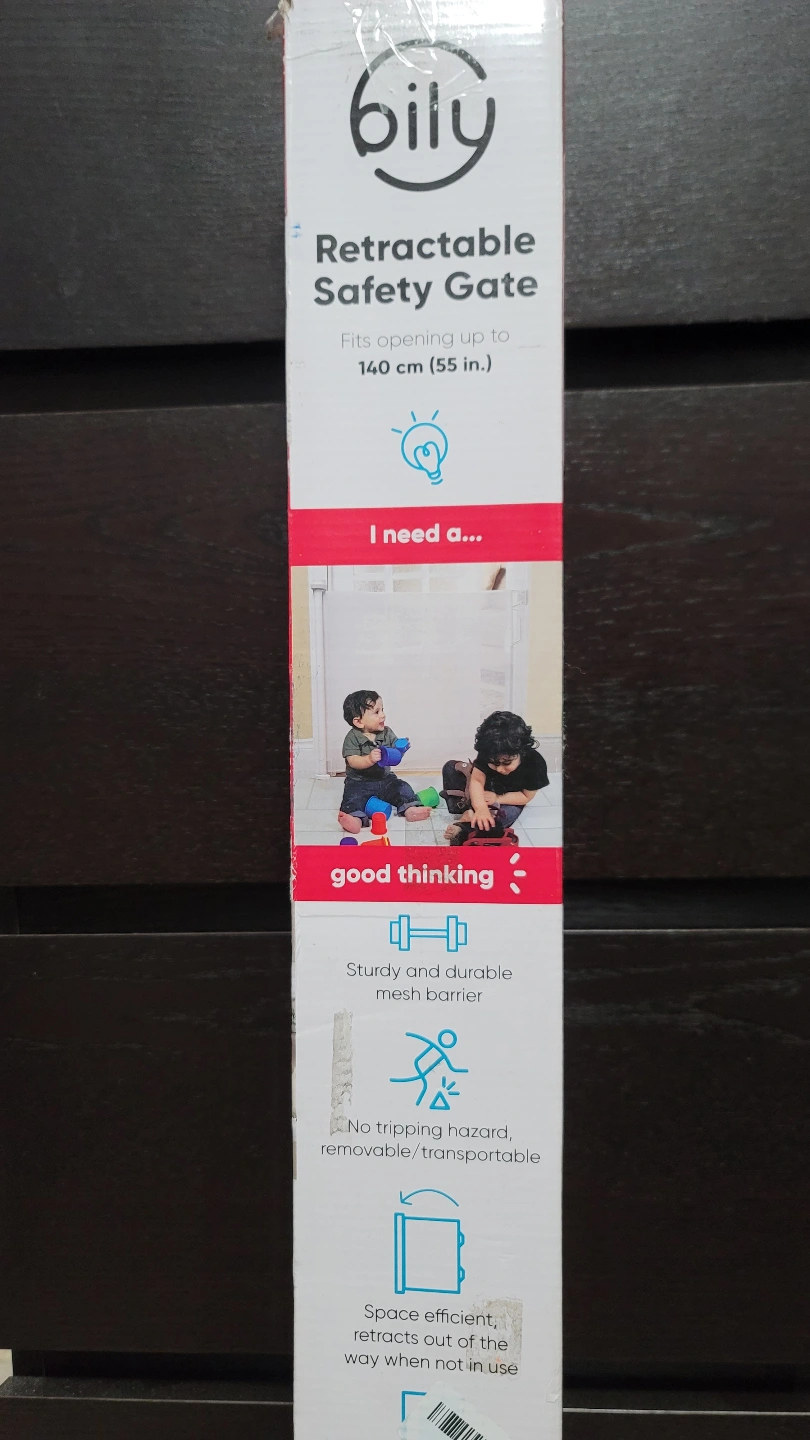 The Bily Retractable Safety Gate is a sturdy and durable mesh barrier, with the option of an inside frame or outside frame mount. The gate retracts out of the way when not in use and is space efficient.