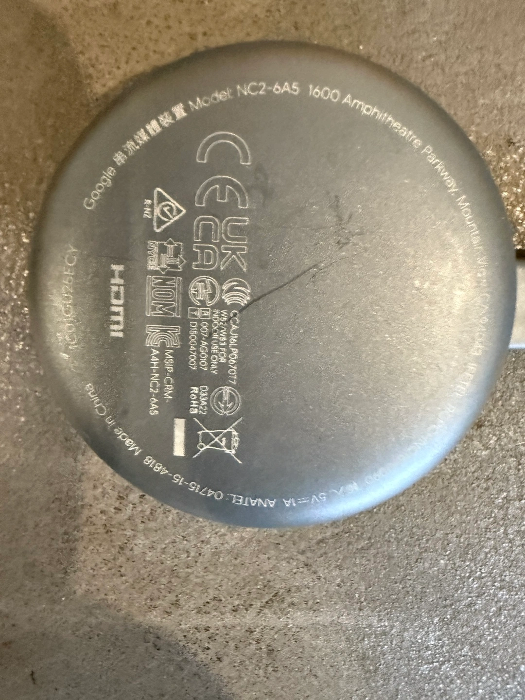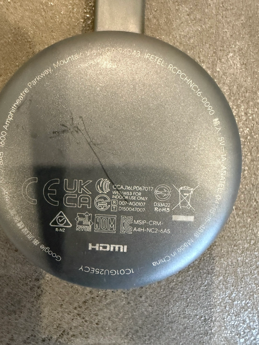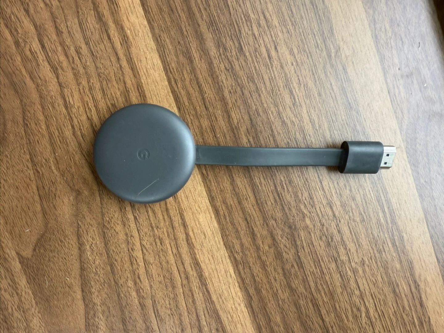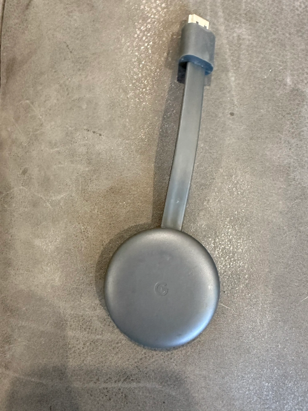 Chromecast streaming media player. Works with most smart TVs. HDMI connection. Compact design. Great for streaming movies and shows.