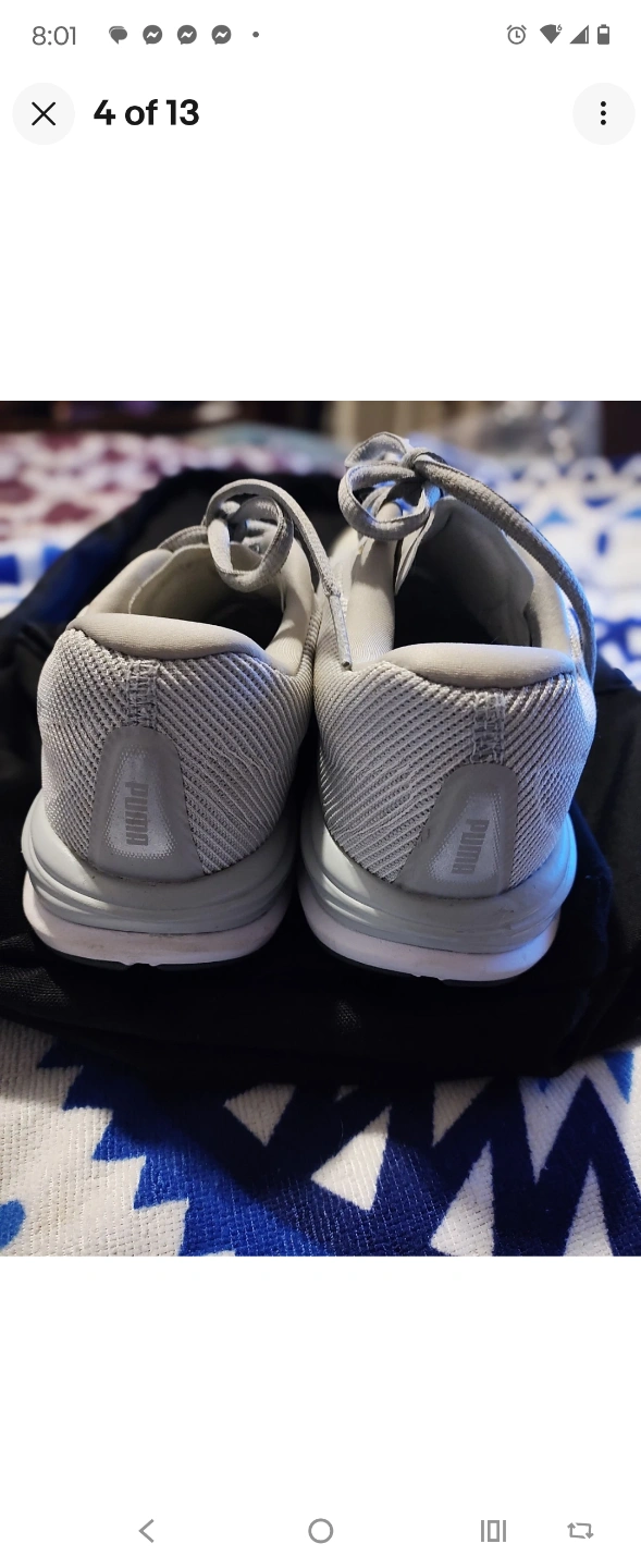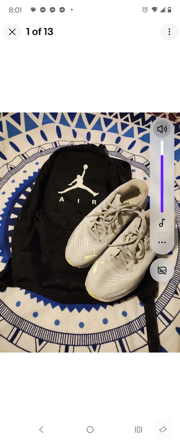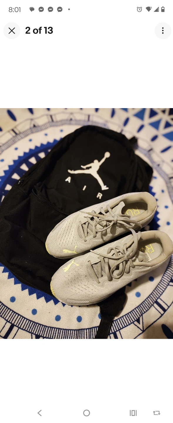 Bundle Puma Women's Sneakers size 8 and Jordan backpack with 5 pockets. The backpack used maybe once for a few hours. Lightly used Puma running shoes. Grey and white color scheme. Comfortable and stylish for workouts or everyday wear. Good condition. Size 8