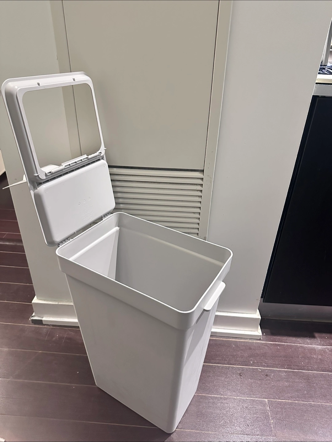 Ikea large capacity bin. Light gray colour. Features a lid. Ideal for storage or waste disposal.