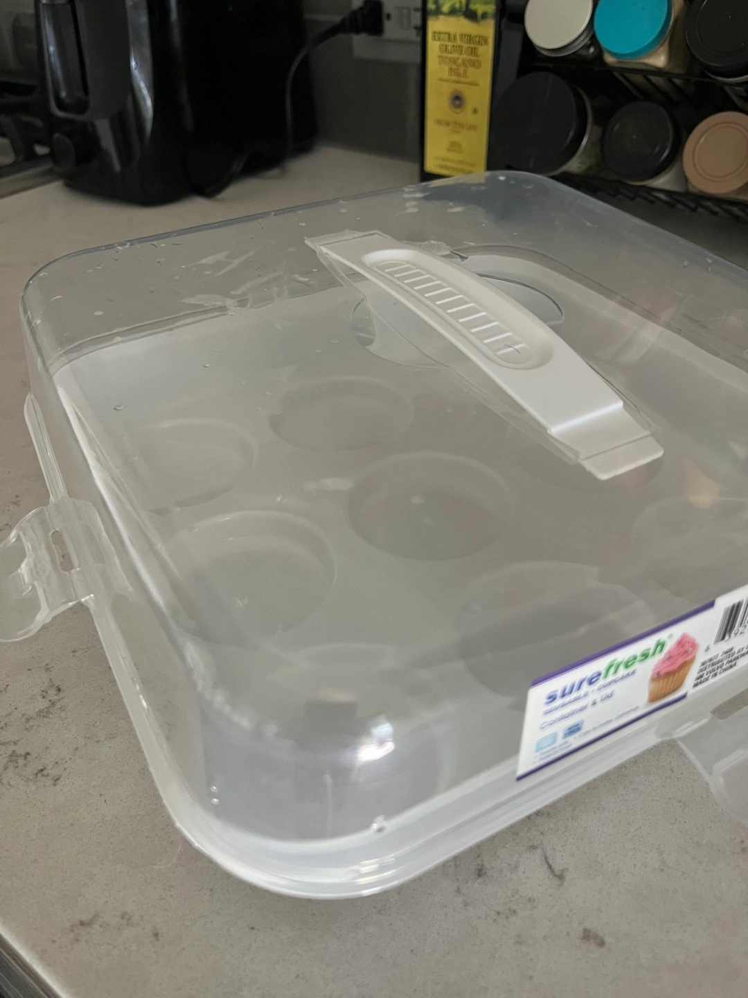 Clear plastic cupcake carrier. Holds 12 cupcakes. Includes a lid and handle. #freecycle