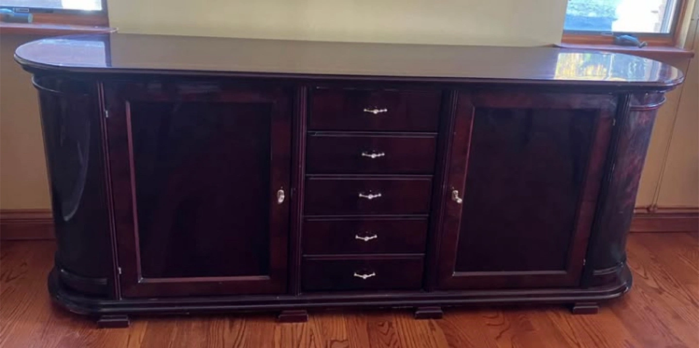Italian Dark Wood Dining Set - Table, Buffet, and China Cabinet