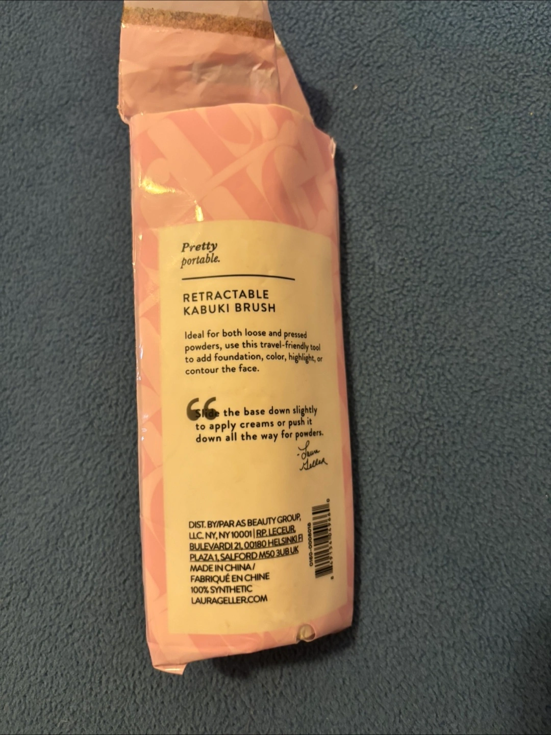 Retractable kabuki brush. Angled design. Perfect for both loose and pressed powders. Travel-friendly. Apply creams or powders. New in package.