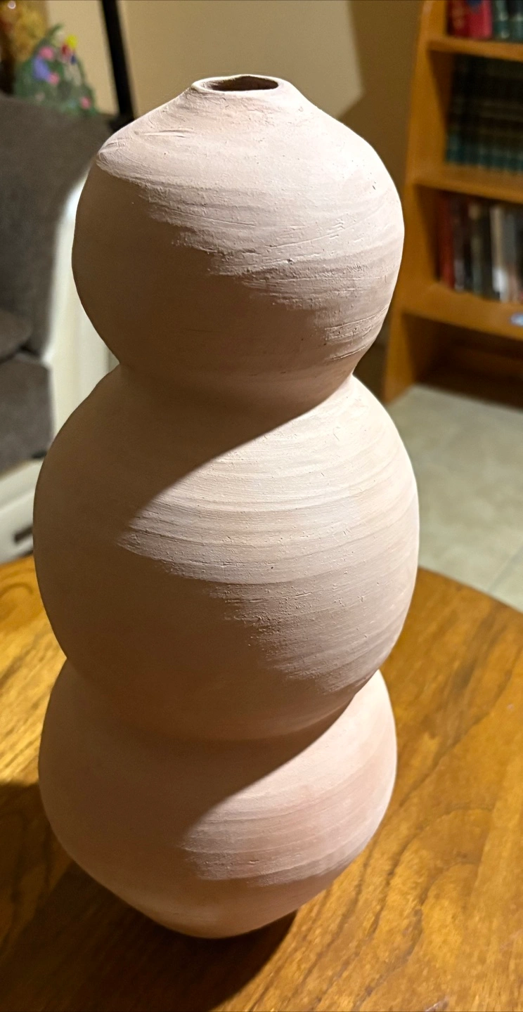 Handmade ceramic vase. Three stacked sphere design. Pale pink color. Great for home decor or flower arrangement.