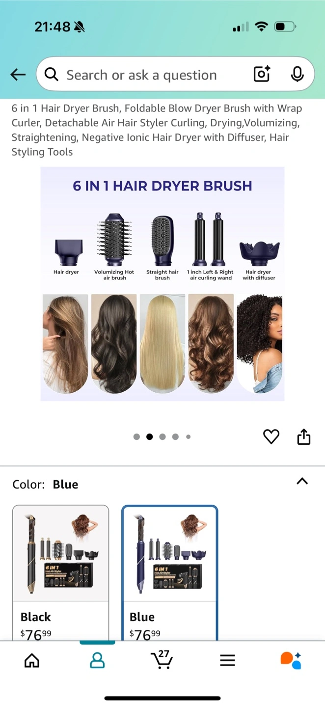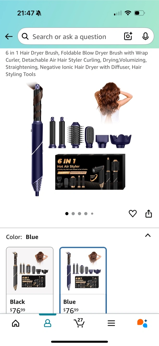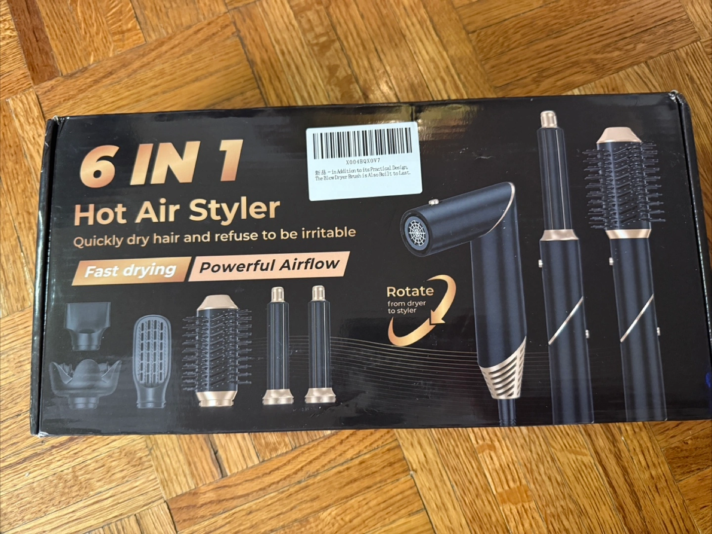 6 in 1 hair dryer brush. Foldable design. Includes attachments for drying, volumizing, straightening, and curling. Negative ionic technology. Fast drying and powerful airflow.(brand new in box)