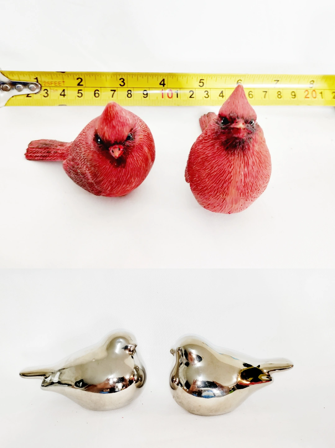 Two Red Cardinal Figurines and Two Silver Bird Figurines