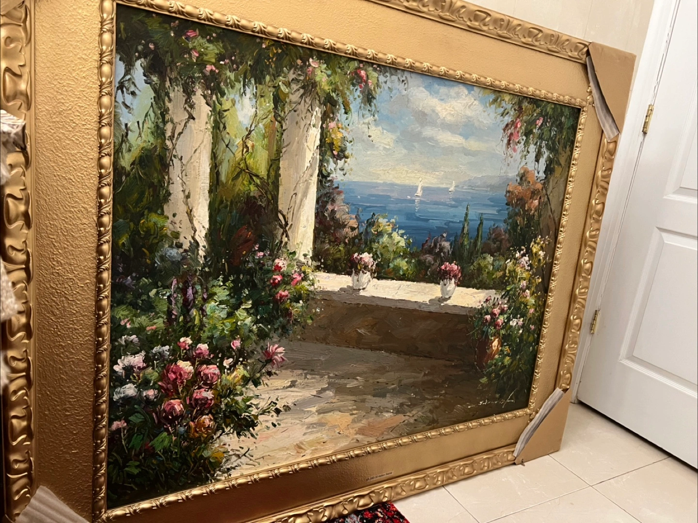 Beautiful crystal chandelier, ornate gold finish. Includes a coordinating ceiling medallion. Stunning centerpiece for any room.