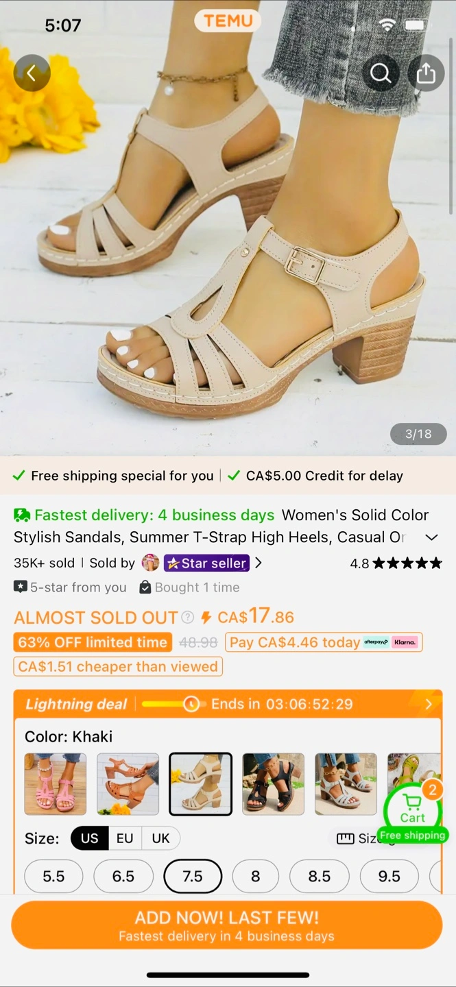 Women's Khaki T-Strap High Heels Sandals Size 7.5