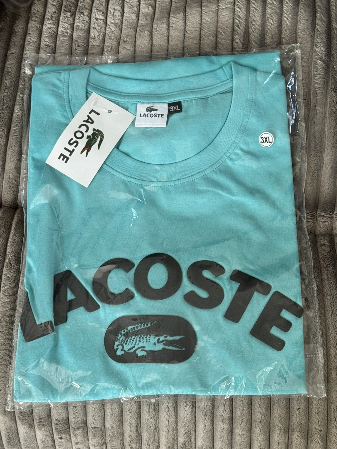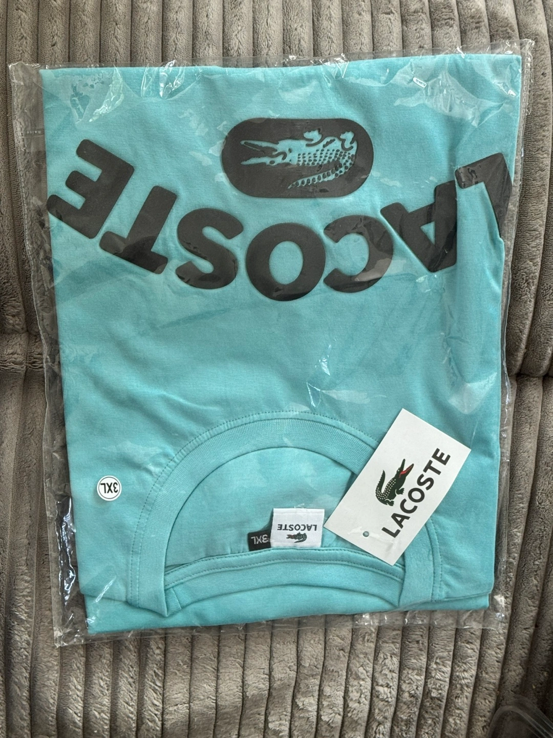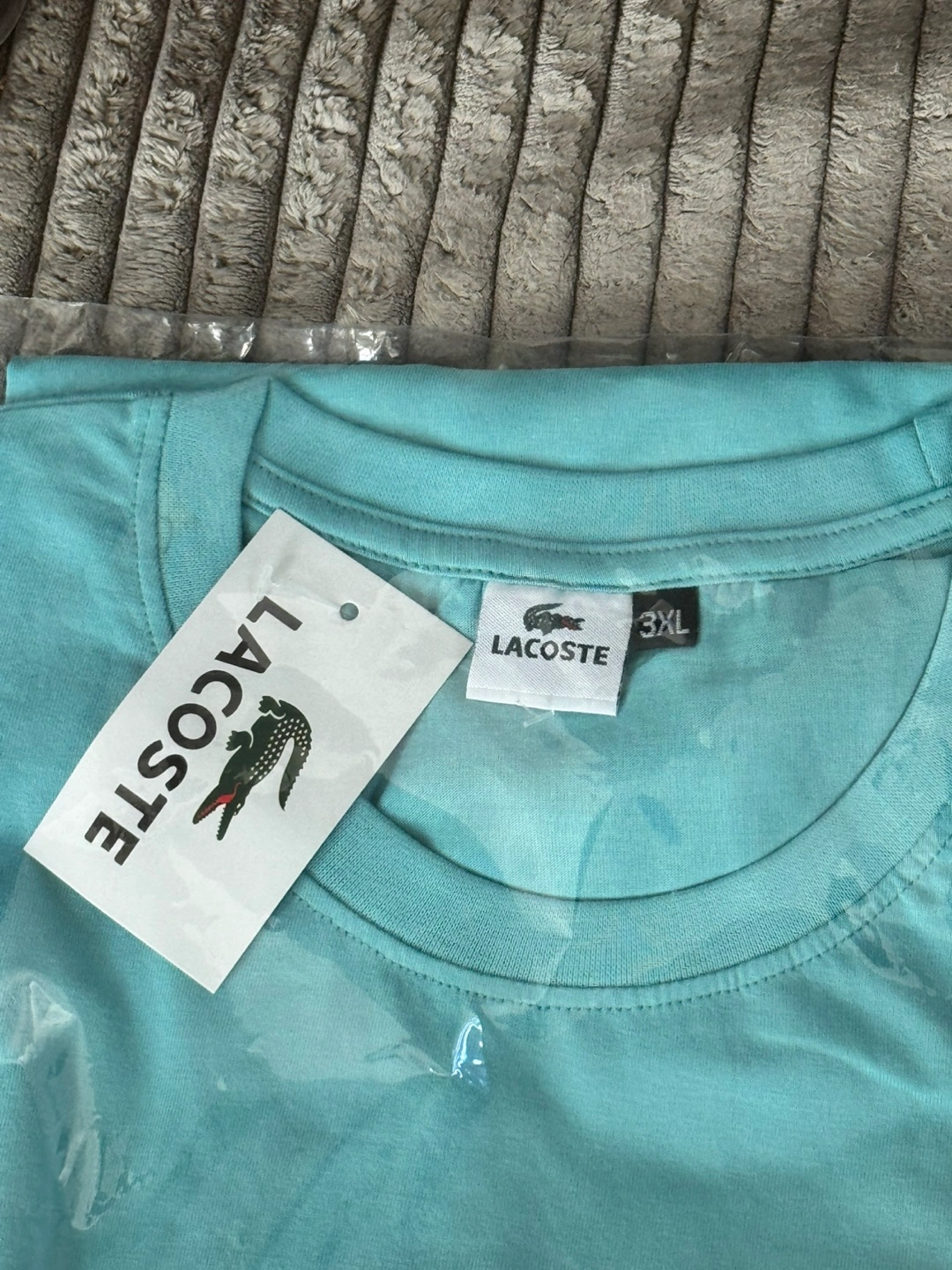 103Brand new with tags. Size 3XL. Light blue tee. Large Lacoste logo on front. Soft cotton material. Perfect for everyday wear. This is a brand new t shirt by La COSTE in Blue which though labeled as 3XL in an Asian Size it probably translates more towards a 1 Extra Large Loose Fitting or 2XL Fitting American Size. This comes from a virus free, smoke free and pet free home. Local pickup is by Schaumburg and Barrington Road in Schaumburg IL 60194 or shipping is available too countrywide with tracking included for free.