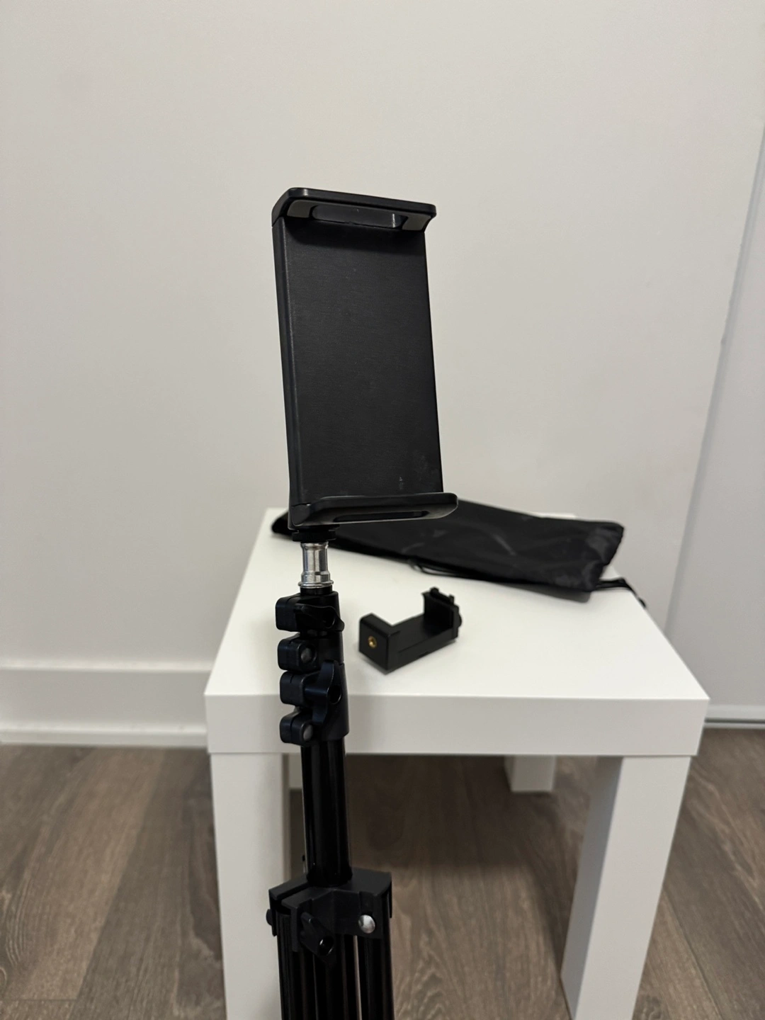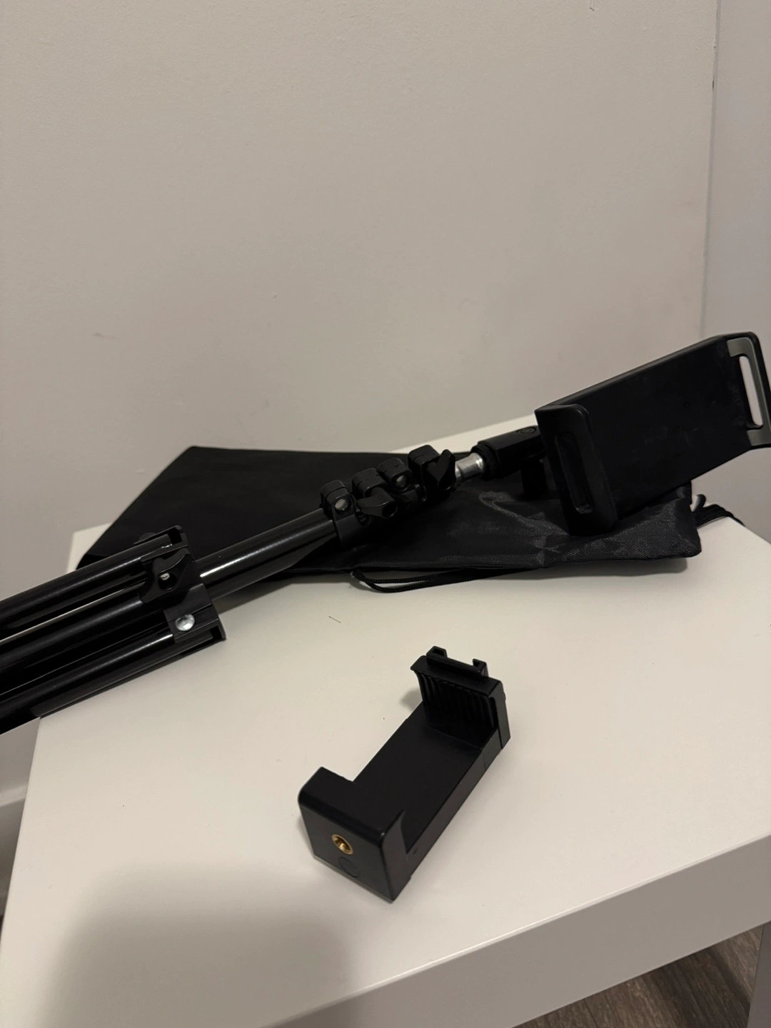Adjustable tripod stand for smartphones. Includes phone holder and carrying bag. Compact and lightweight, perfect for travel or vlogging. I live close to Eglinton station so pls check the location before messaging me.