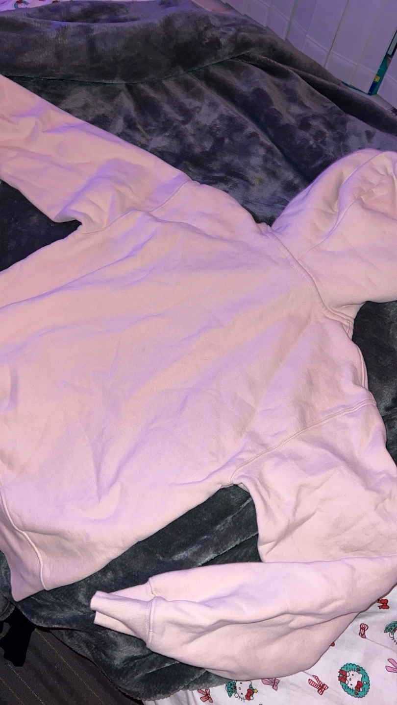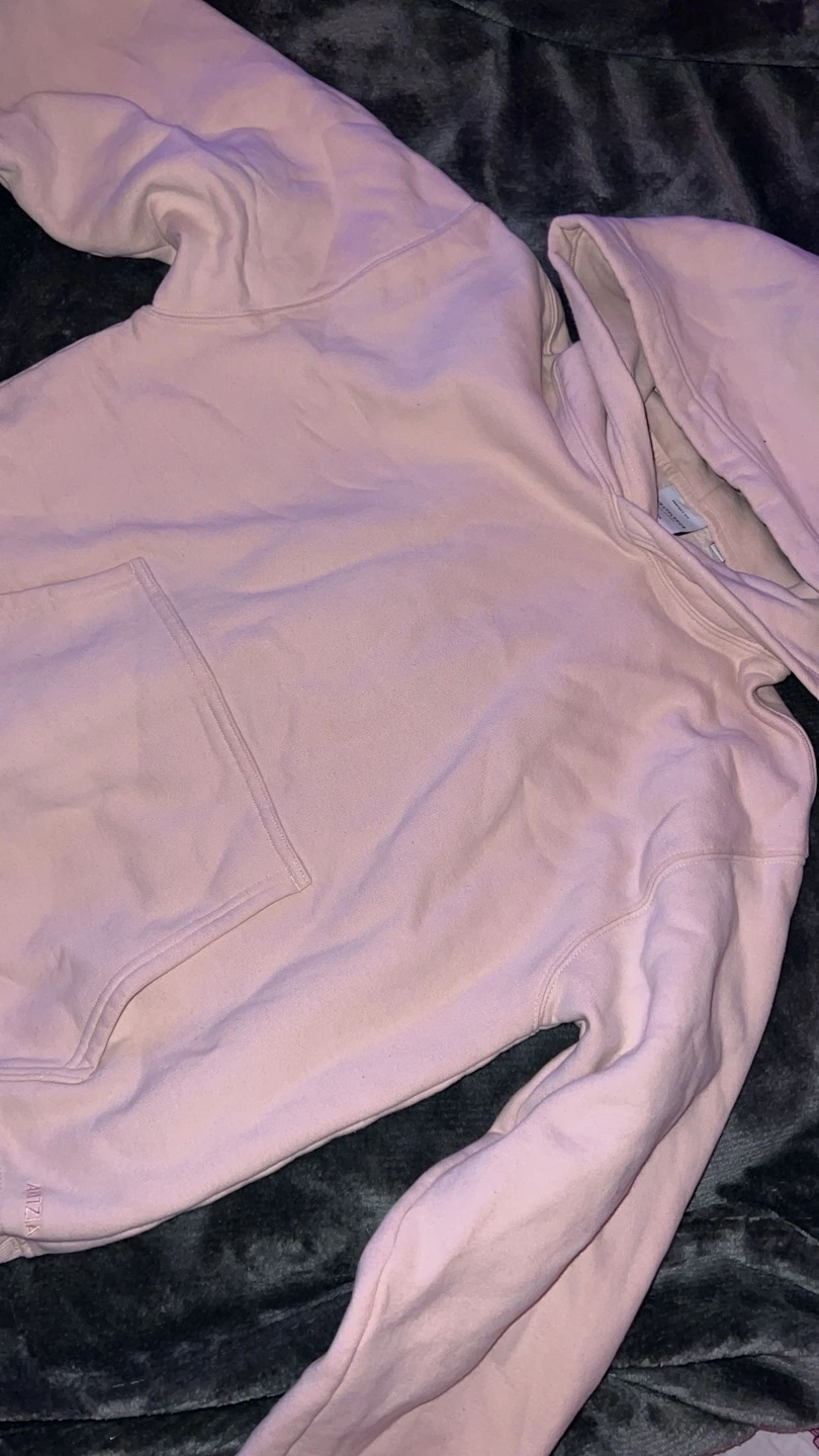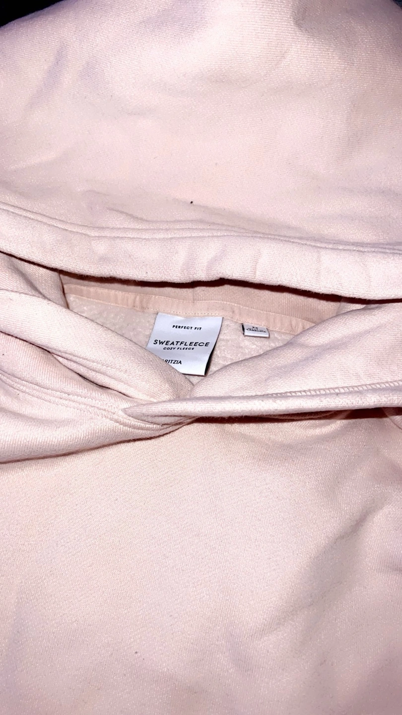 12Light pink coloured hoodie. Soft material, perfect for casual wear.