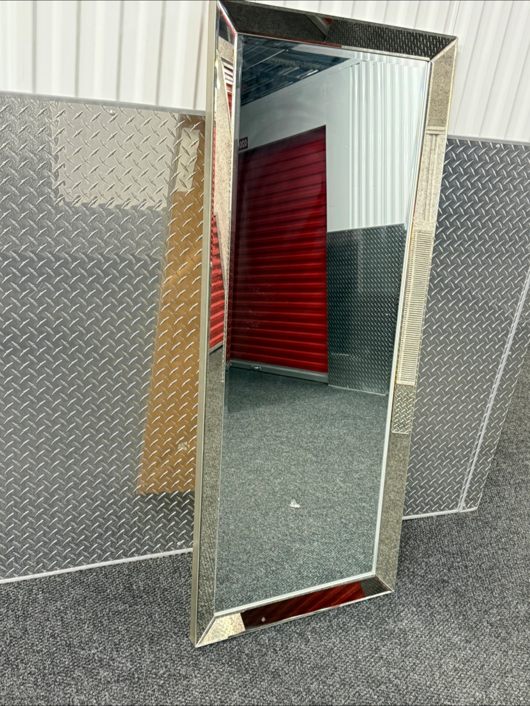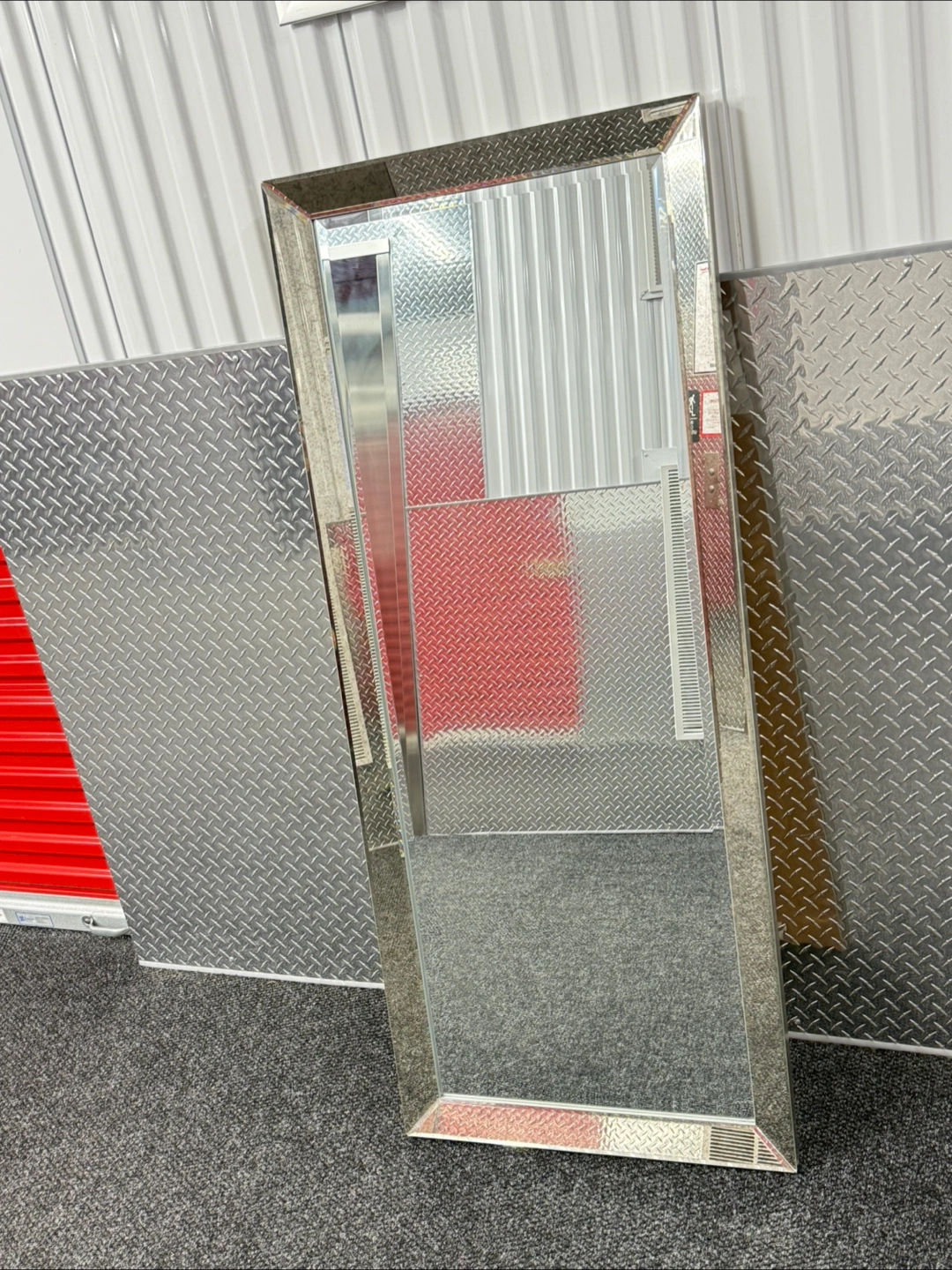 165Full length mirror. Silver frame. Perfect for bedroom or hallway. Sleek and modern design.