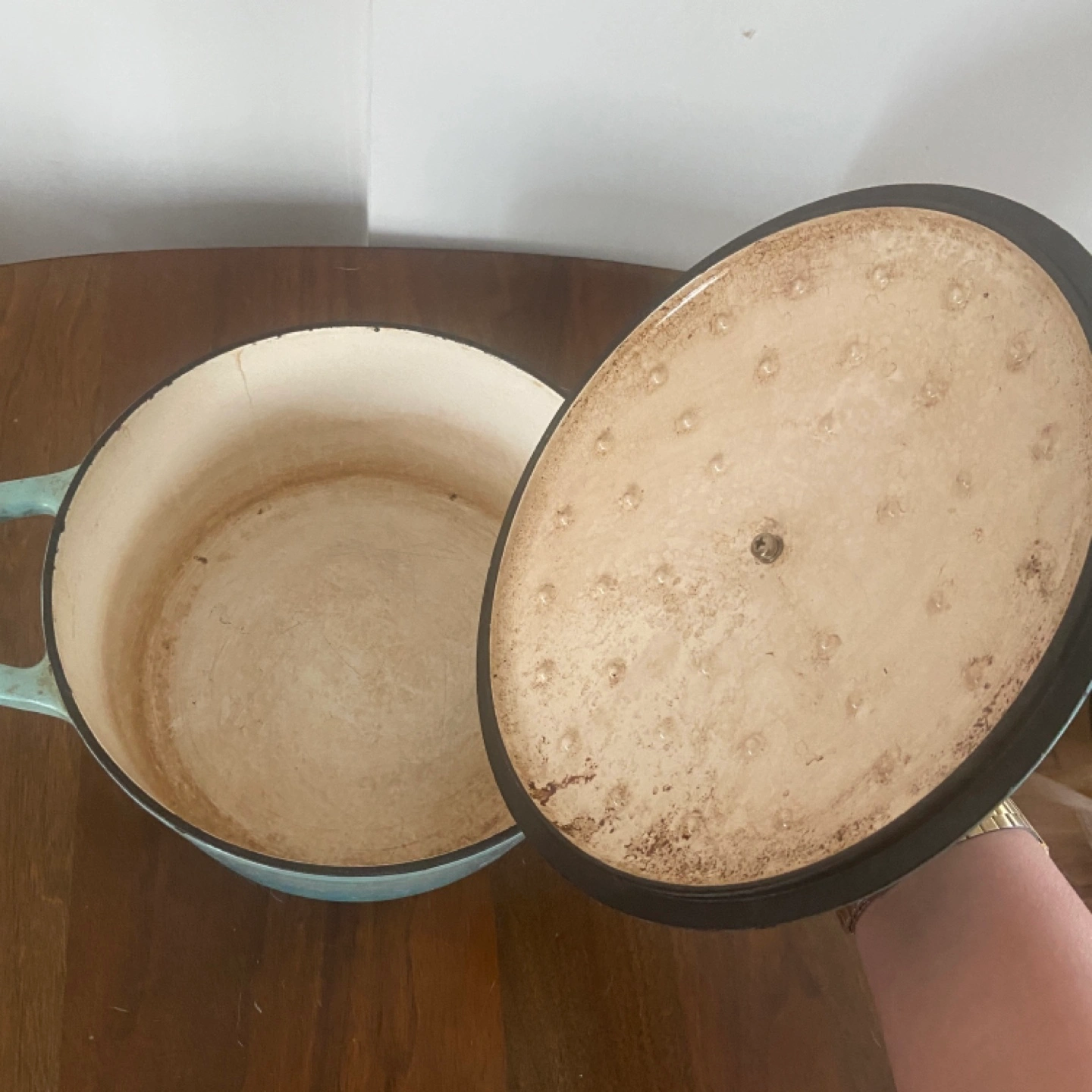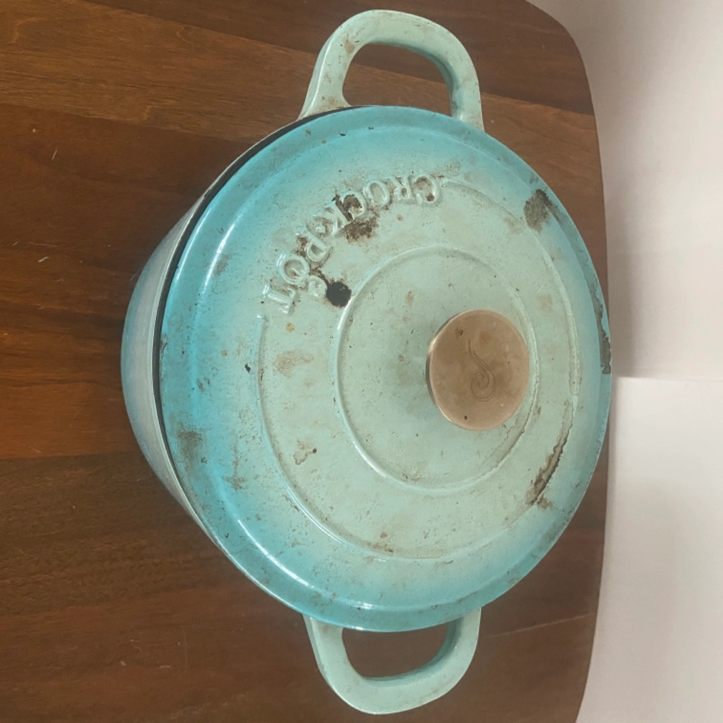 5-quart Crock-Pot Dutch oven. Light teal enamel exterior. Used condition. Shows some staining and discoloration. ⏰ Please confirm the DAY AND TIME you’d like to pick up in your message. 🚫 No shows will be blocked/reported. 🐈🐈 2 cat friendly, non-smoking home 🪴Pickup near Garfield Park Conservatory 💵 First come, first serve. Cash, Zelle or Apple Pay in person only. 🛜 Crossposted on multiple platforms.
