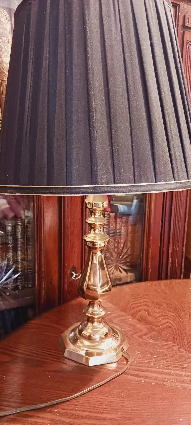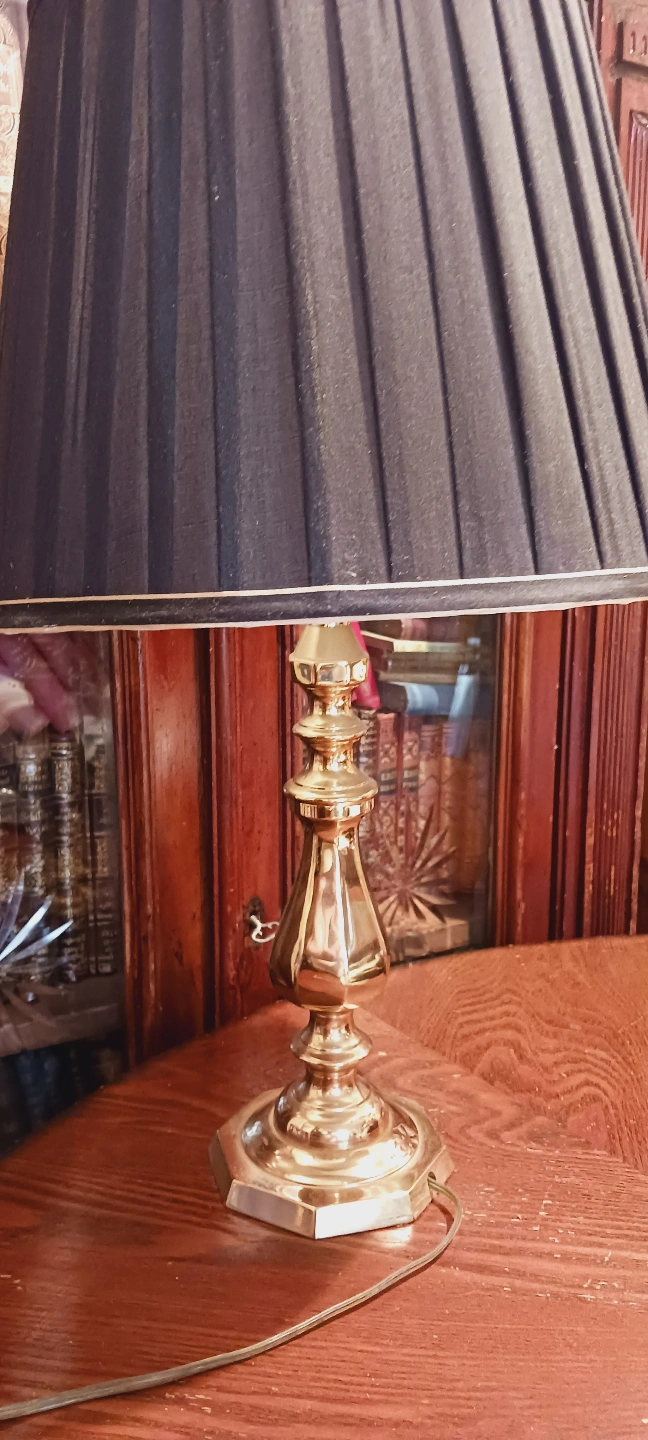 Gorgeous Simple Elegant Vintage Mid Century Solid Brass Table Desk Lamp with Black Shade. Excellent condition. Works perfectly. 24"×10". ALL MY PRICES ARE NEGOTIABLE !!!