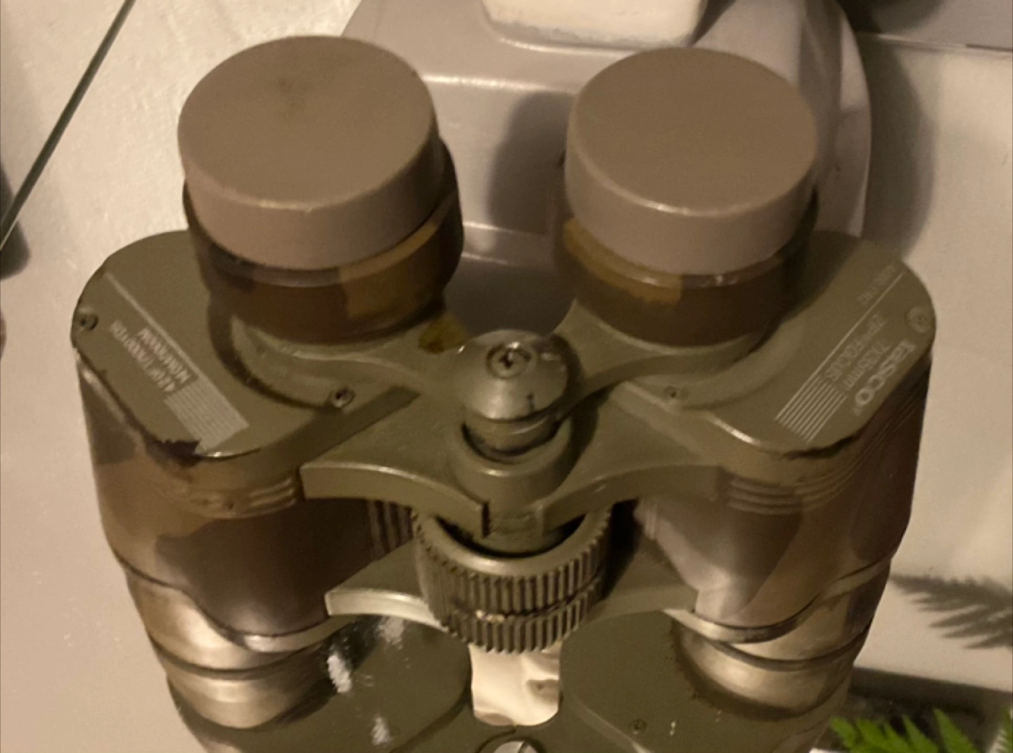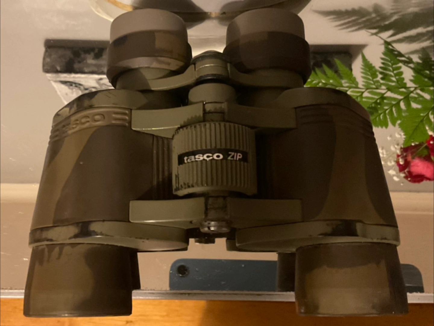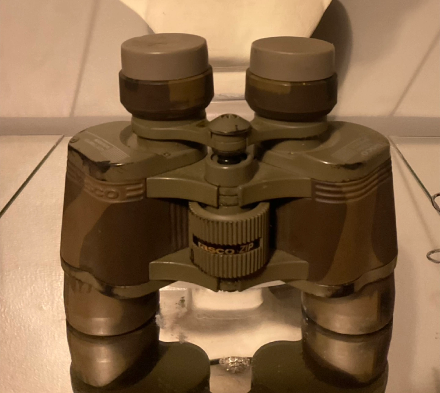 Compact binoculars. Camouflage pattern. Good for bird watching or outdoor activities. In good condition