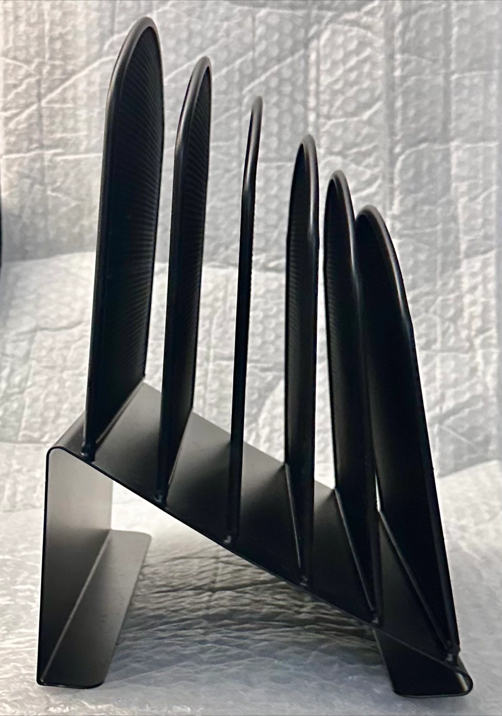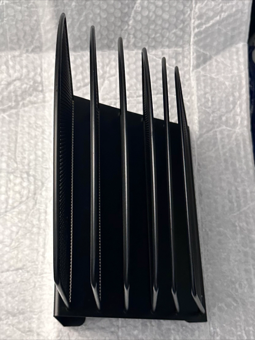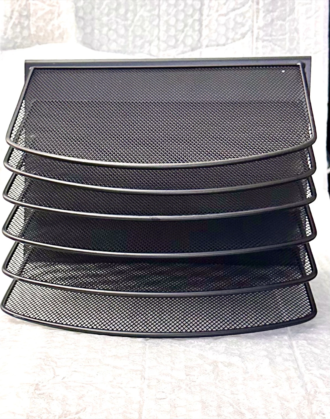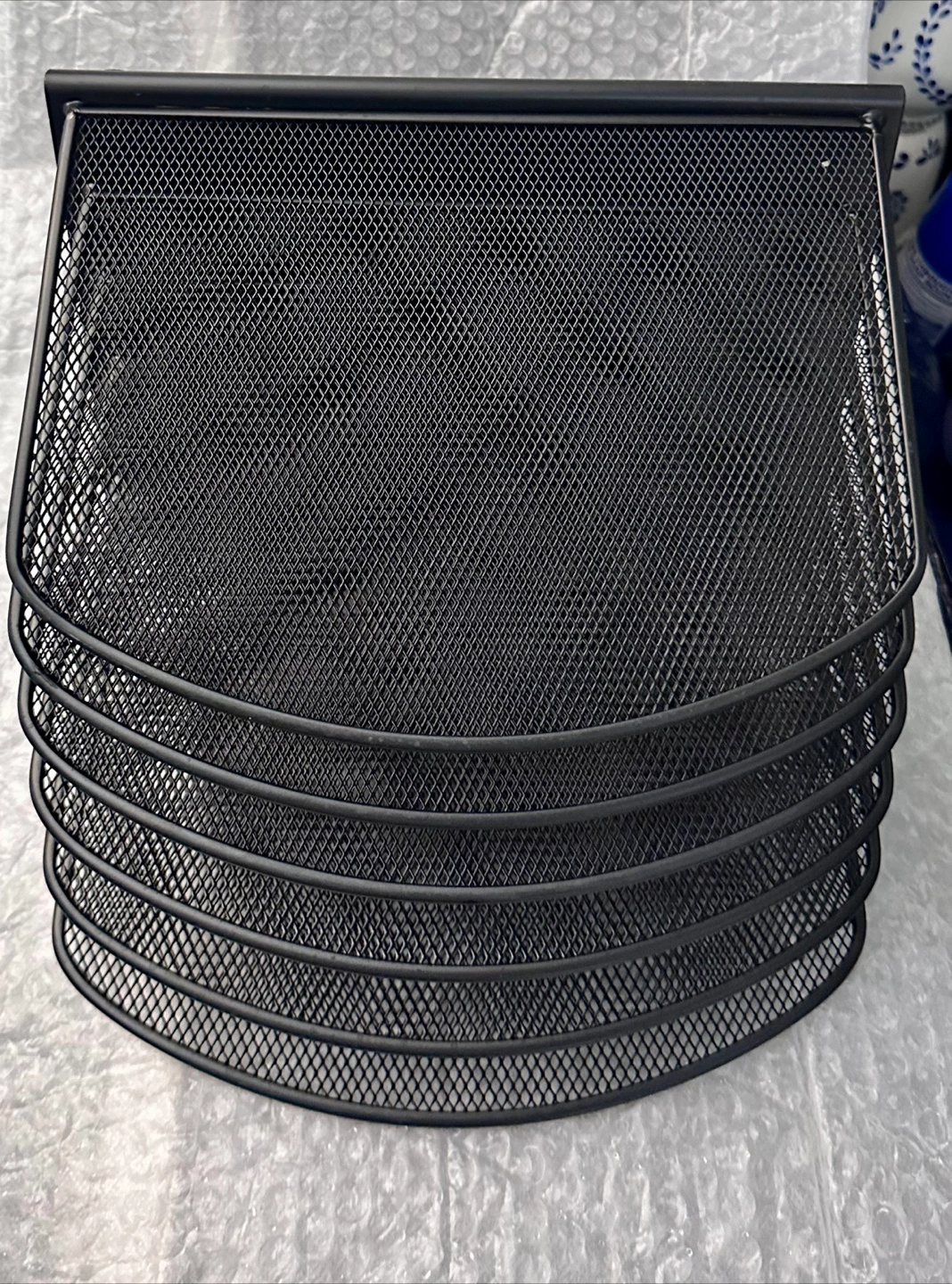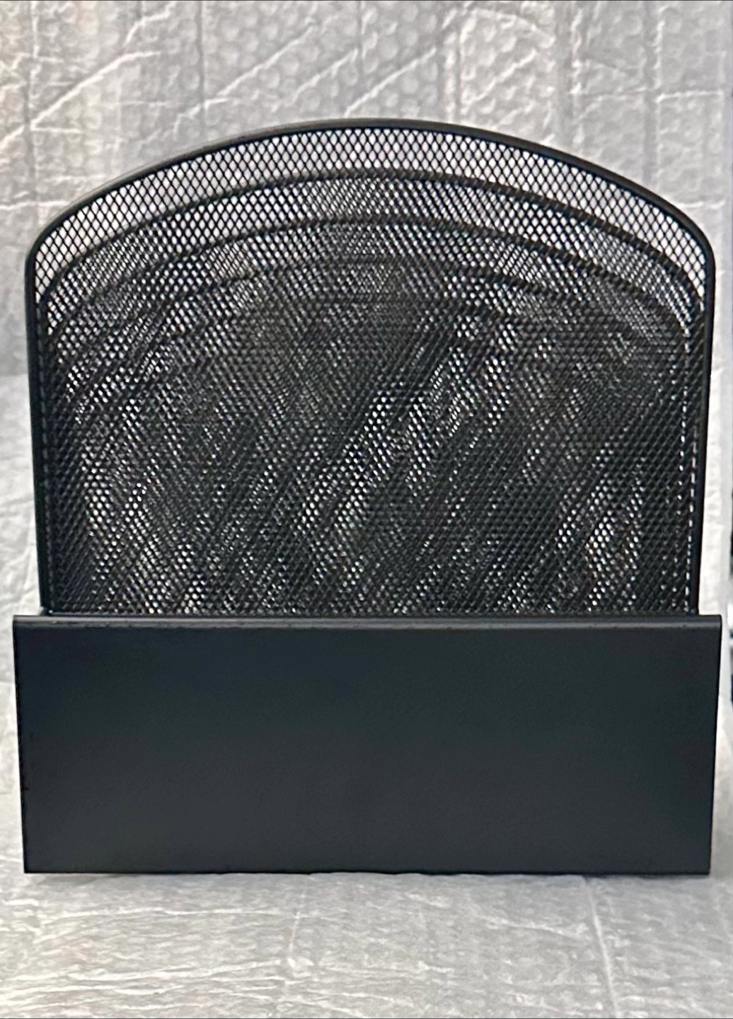 166Five-section desktop organizer. Black metal mesh construction. Great for organizing papers and mail. Keeps your desk tidy.