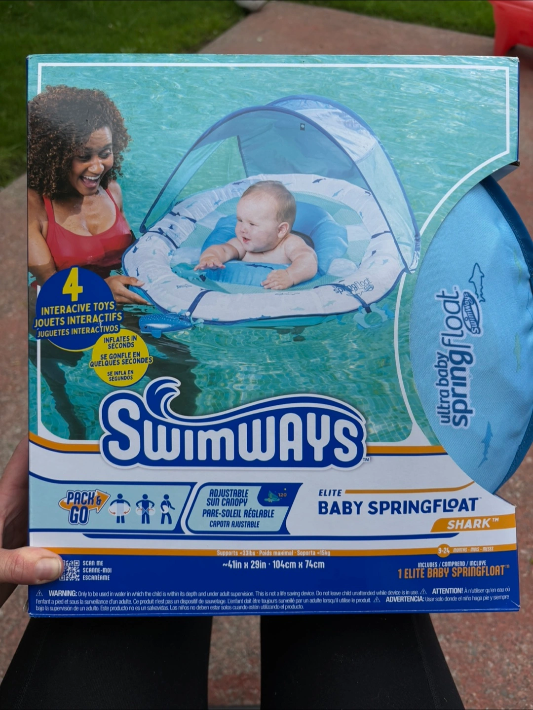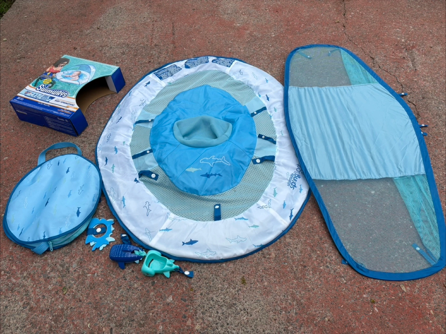 Baby swim float. Aged 9-24 months. Comes with 4 interactive toys and adjustable sun canopy and seating. Fantastic for any type of water excursion.