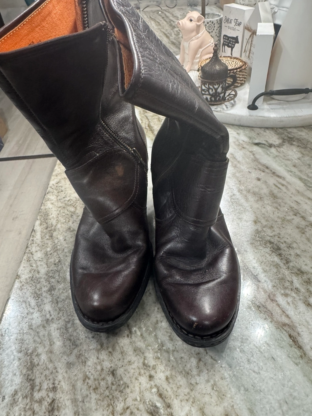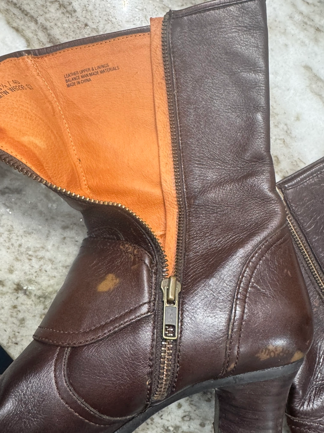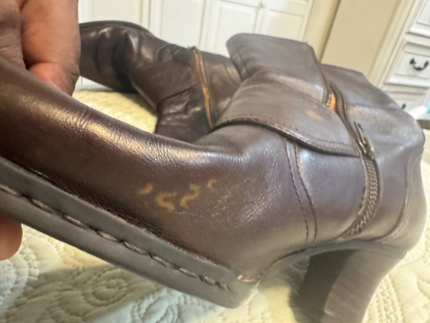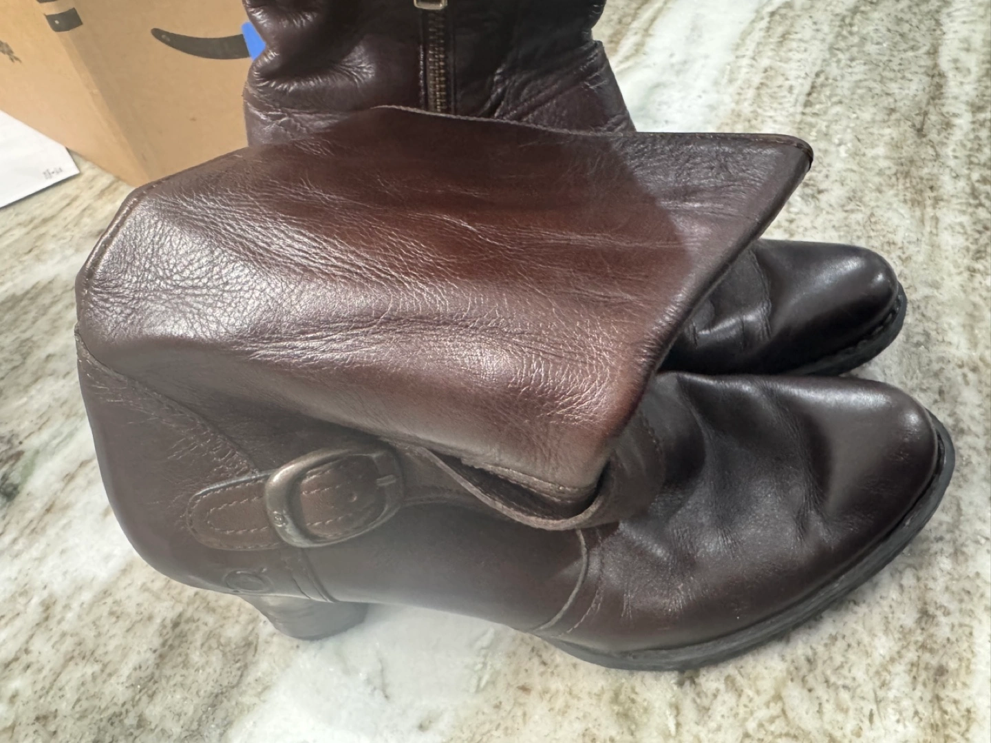 Women's brown leather boots. Side zipper. Block heel. Buckle detail. Hand-crafted.
