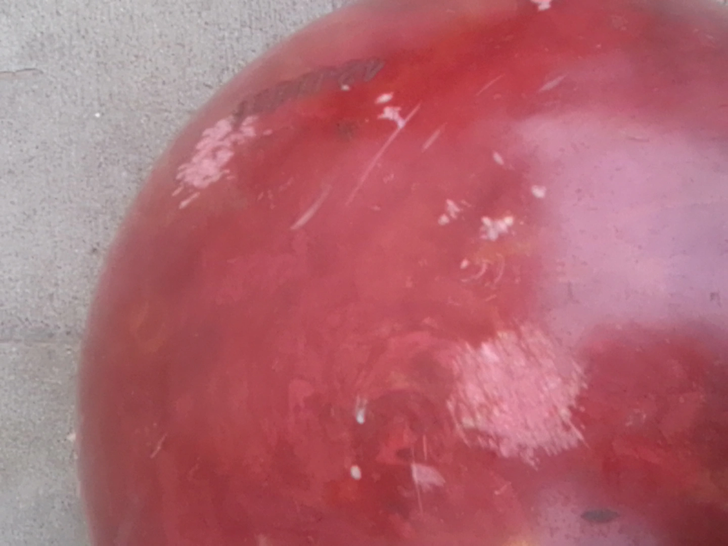 1000+Red Brunswick Real Deal bowling ball. Three finger holes. Some scuffs and scratches. Used condition.