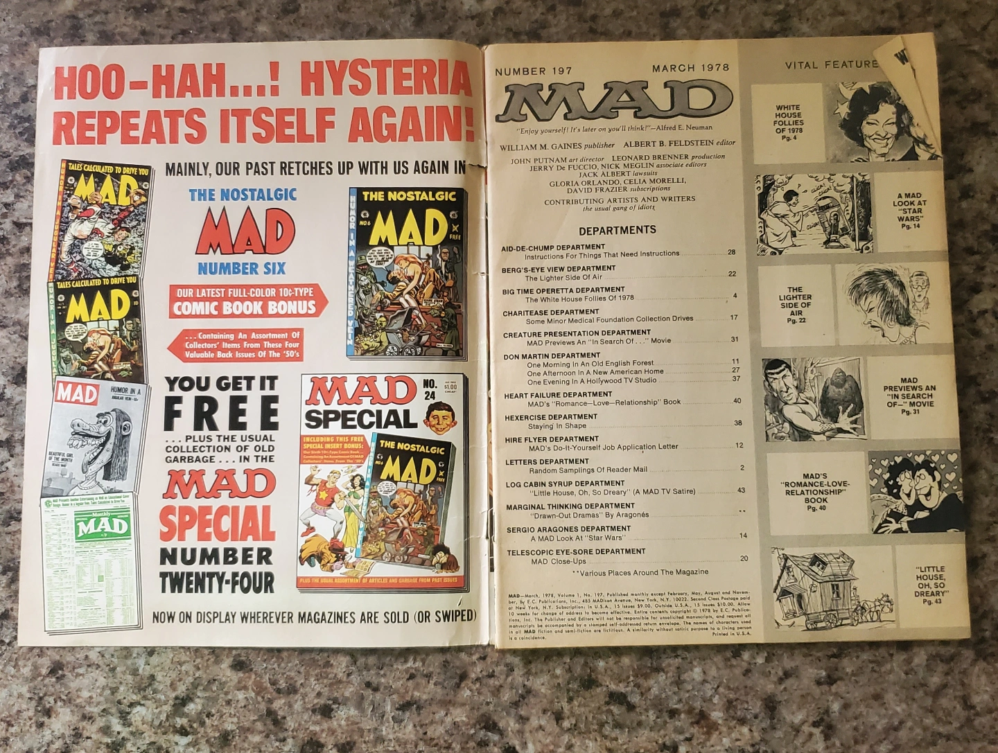 Vintage MAD Magazine. March 1978 issue number 197. Features a Star Wars parody. Great condition for its age. A collectible for fans of MAD Magazine and pop culture.