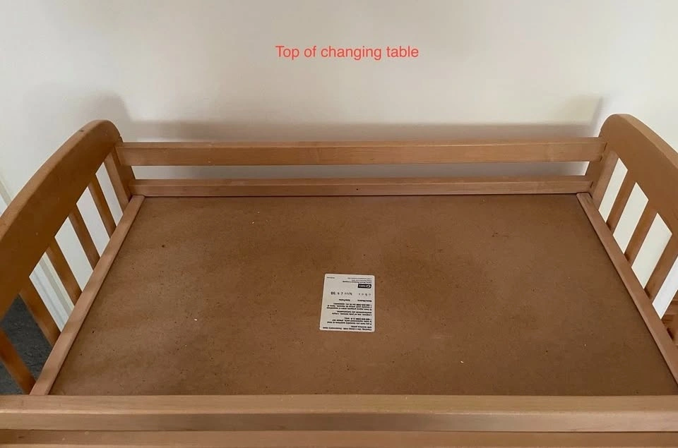 Beautiful vintage changing table featuring two shelves. Due to sanitary reasons, pad not included. Wood species is unknown.