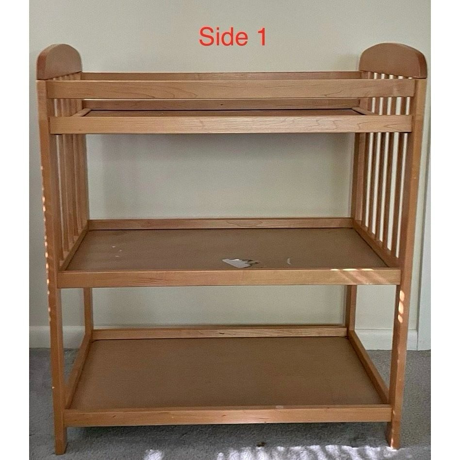 Beautiful vintage changing table featuring two shelves. Due to sanitary reasons, pad not included. Wood species is unknown.