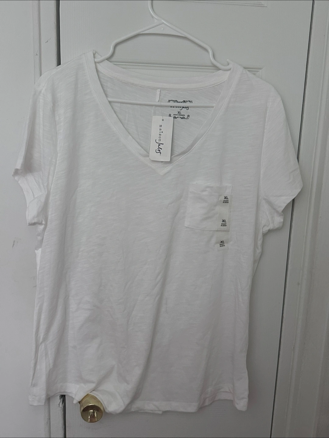 Maison Jules White V-Neck Short Sleeve T-Shirt - Size XL