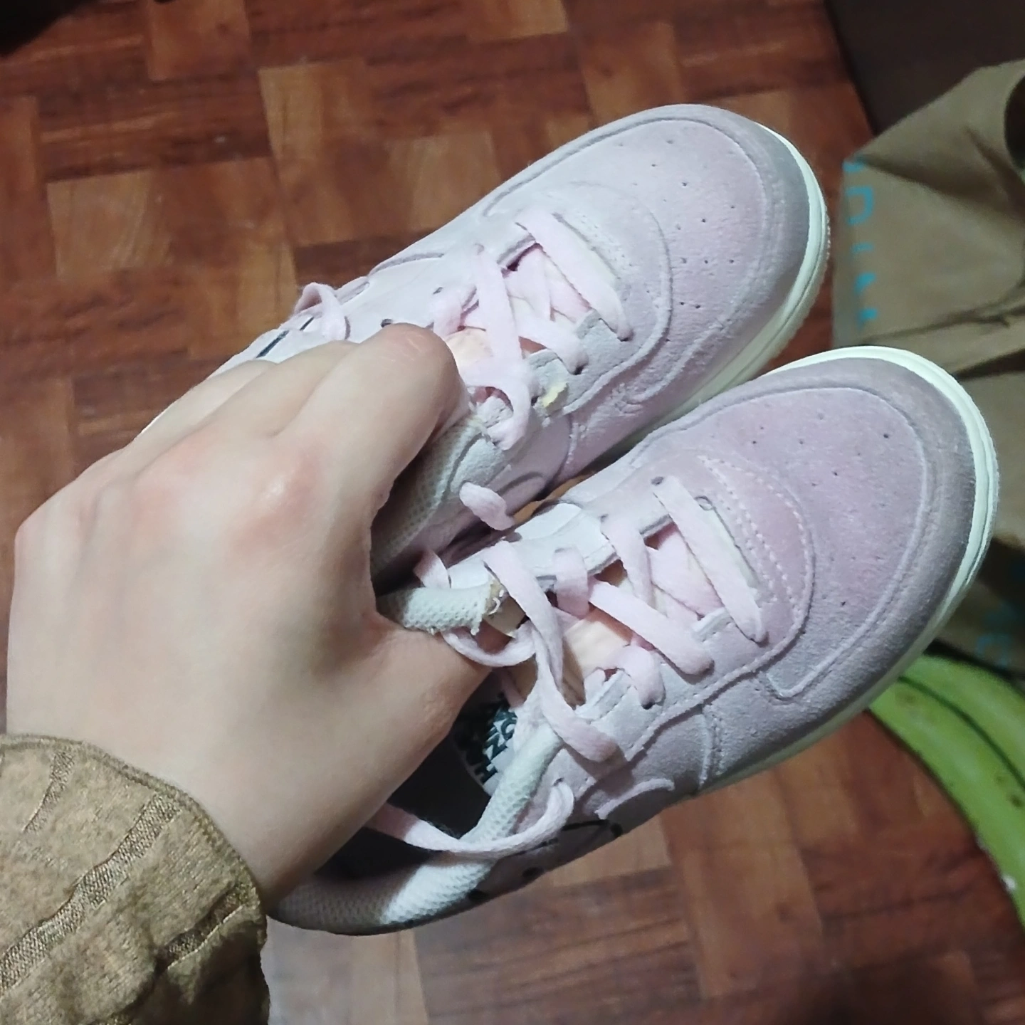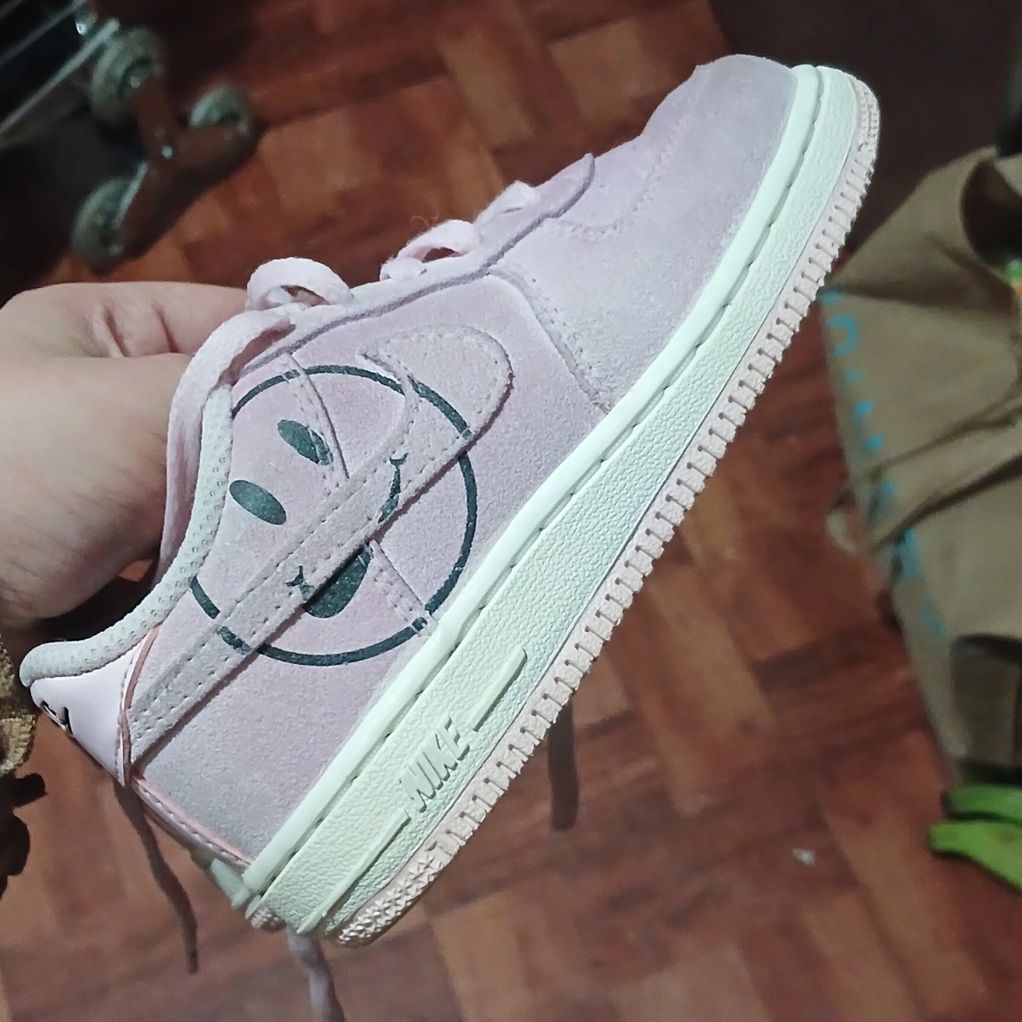 1000+Pink suede Nike Air Force 1 sneakers. Smiley face design. For kids; SIZE 10C.