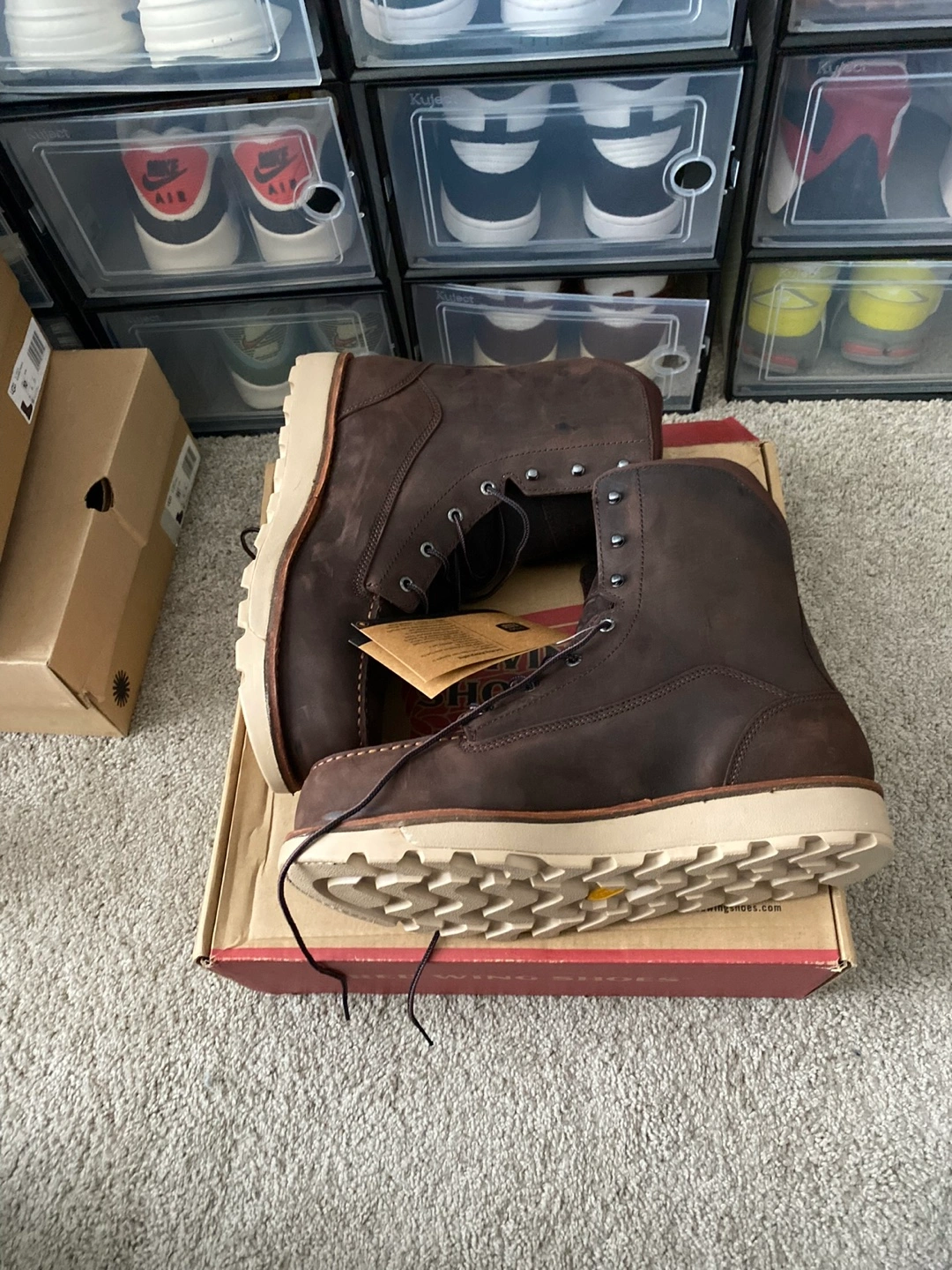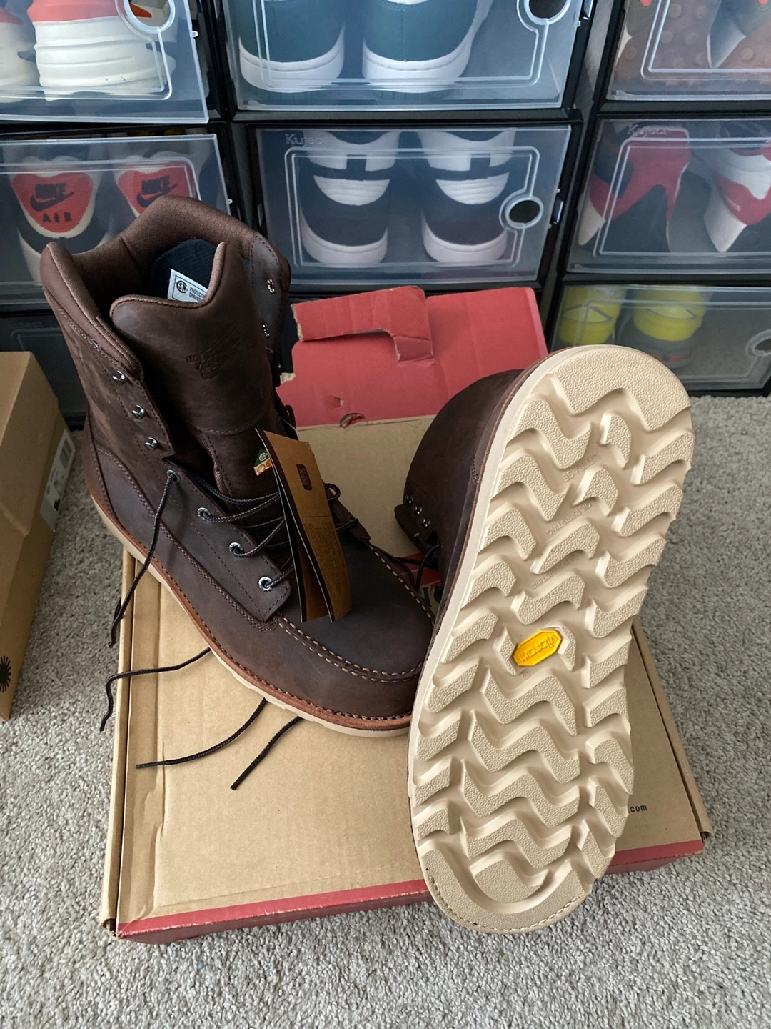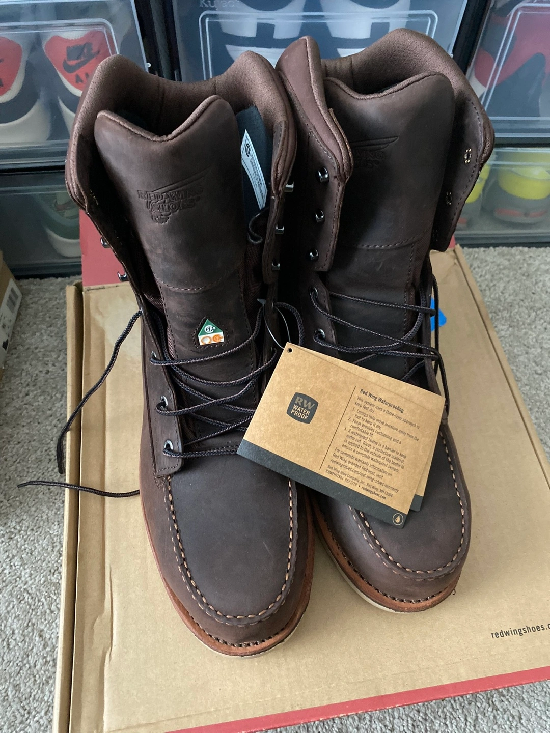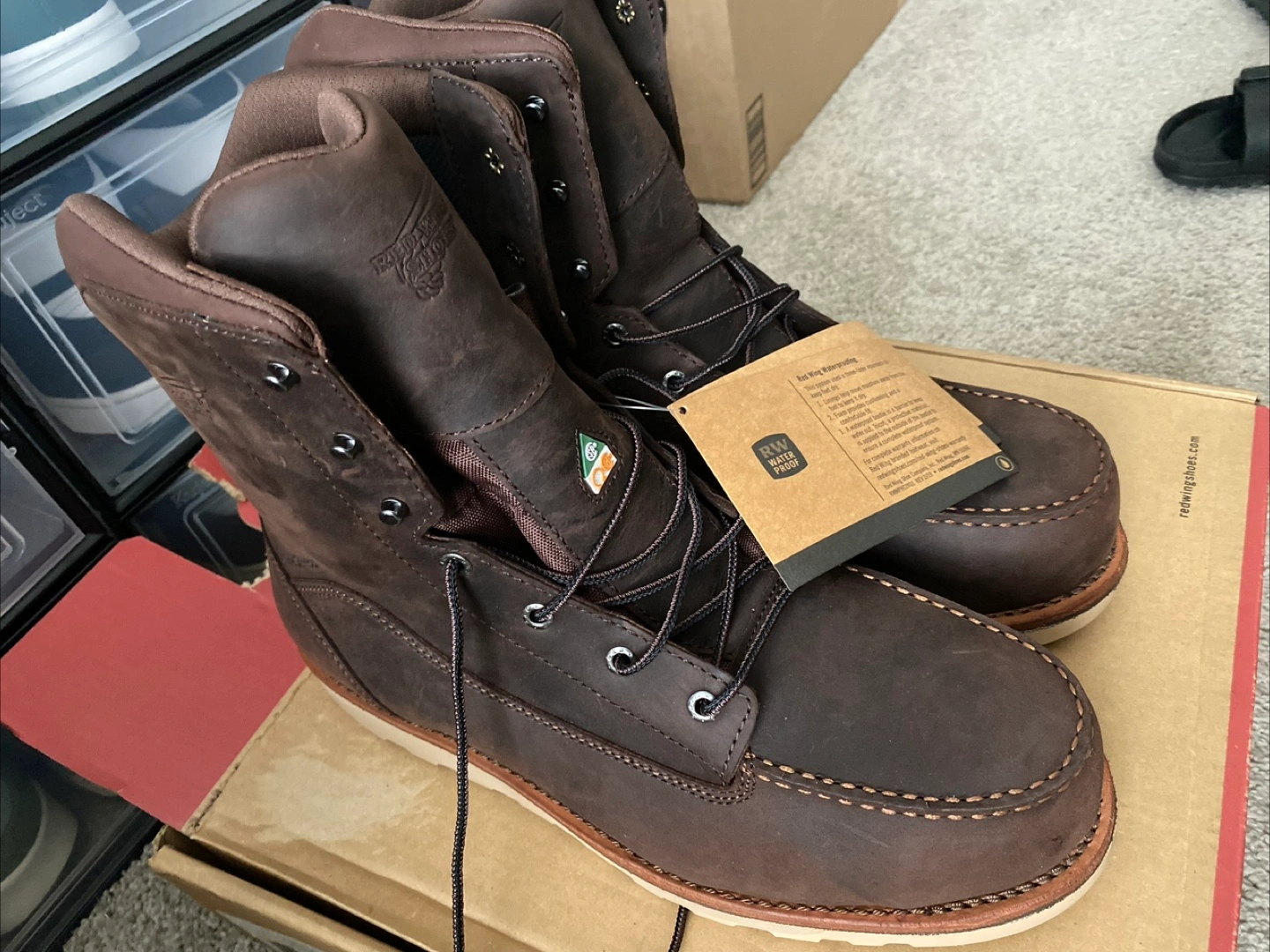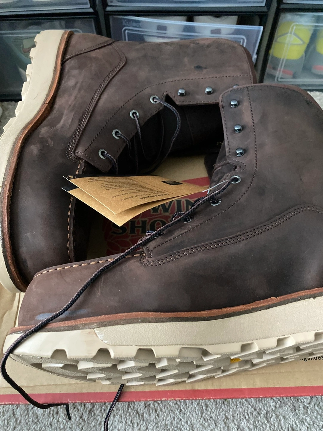 Brown leather boots. Lace-up style. steel toe design. Brand new in box. Waterproof.