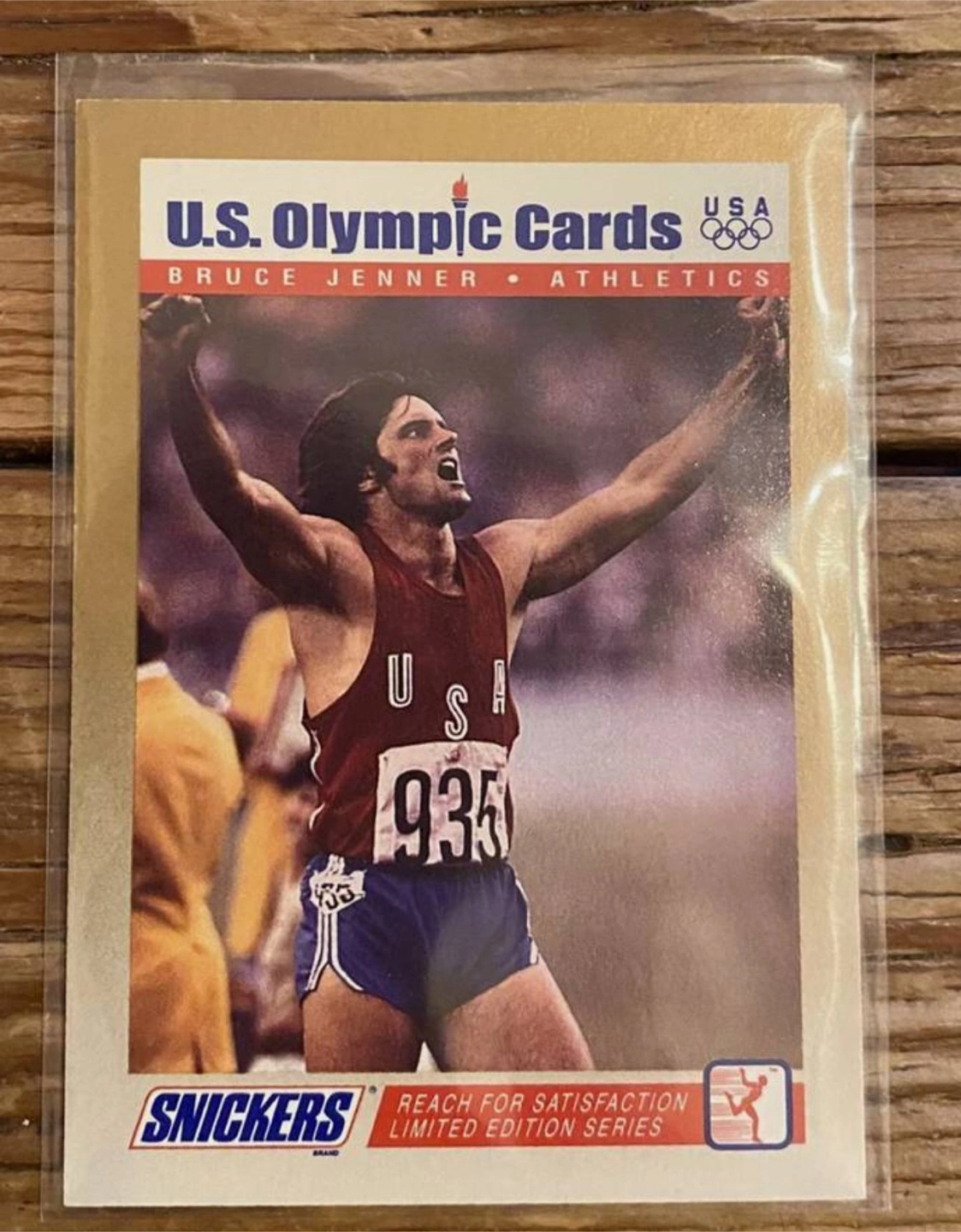 Limited edition Snickers card. Features Bruce Jenner. Part of the U.S. Olympic Cards series.