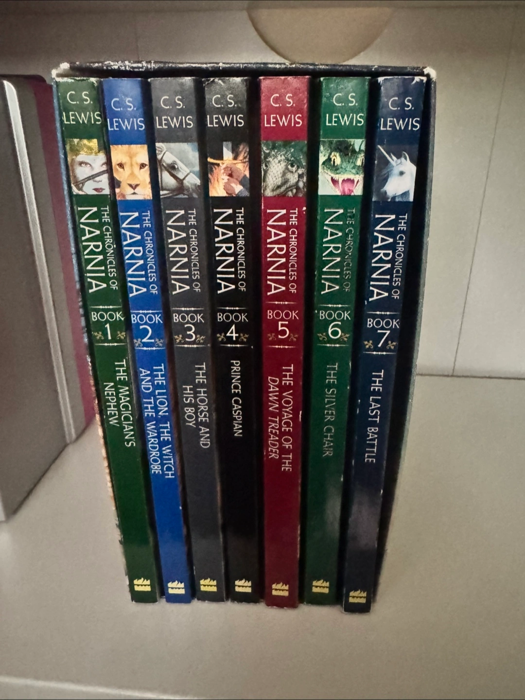 Seven books in a boxed set. Includes all seven titles of the Chronicles of Narnia series. Collectible boxed set.