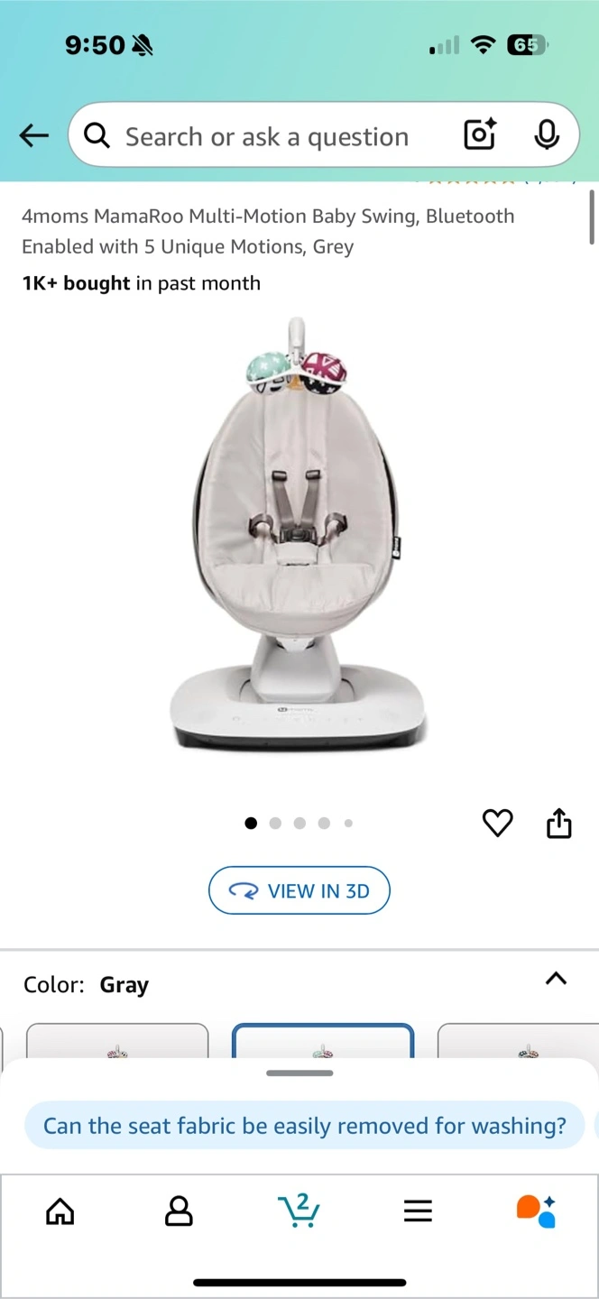 Bluetooth enabled baby swing. Five unique motions. Gray color. Includes toy attachments. No exchange and return