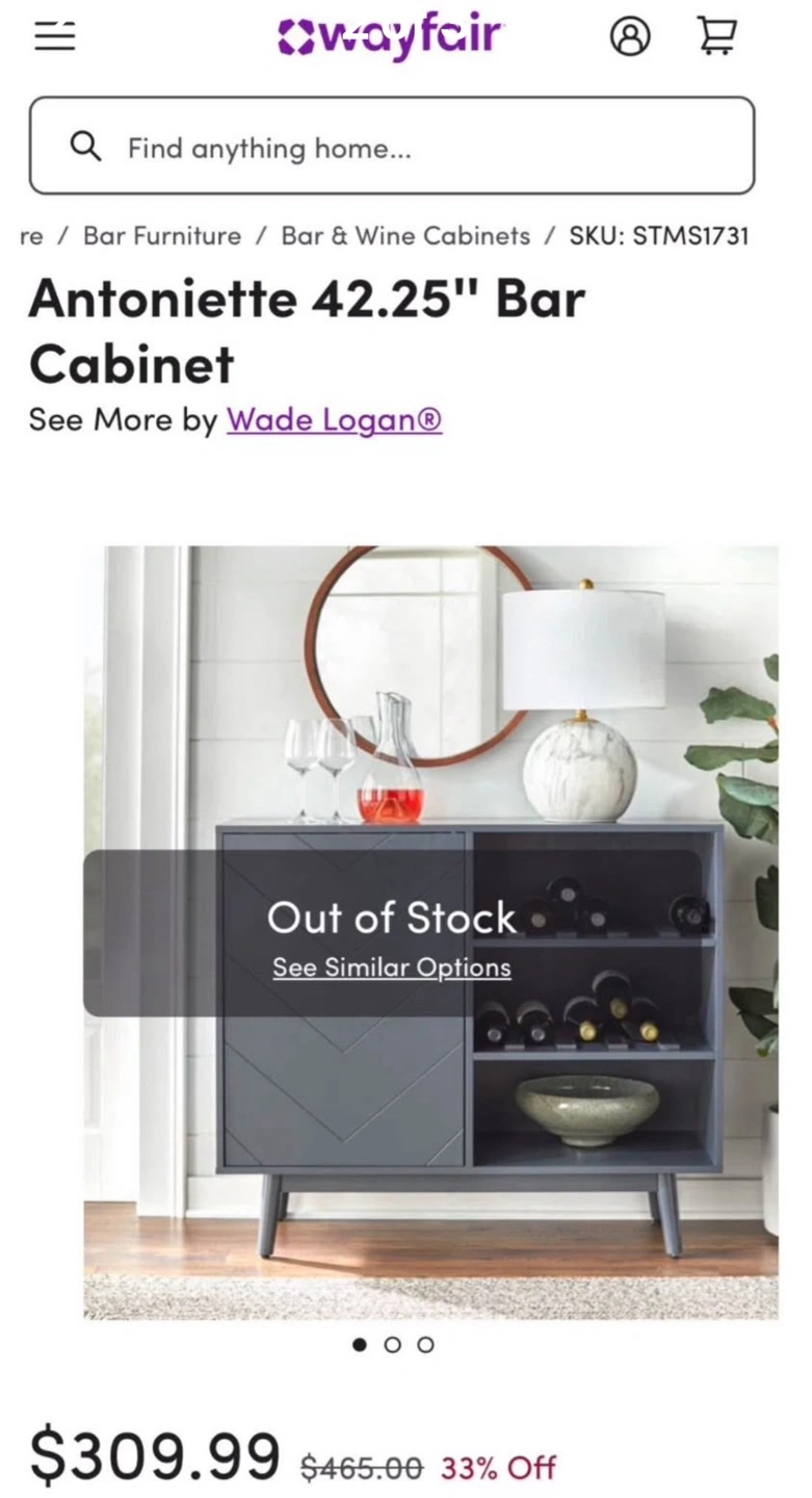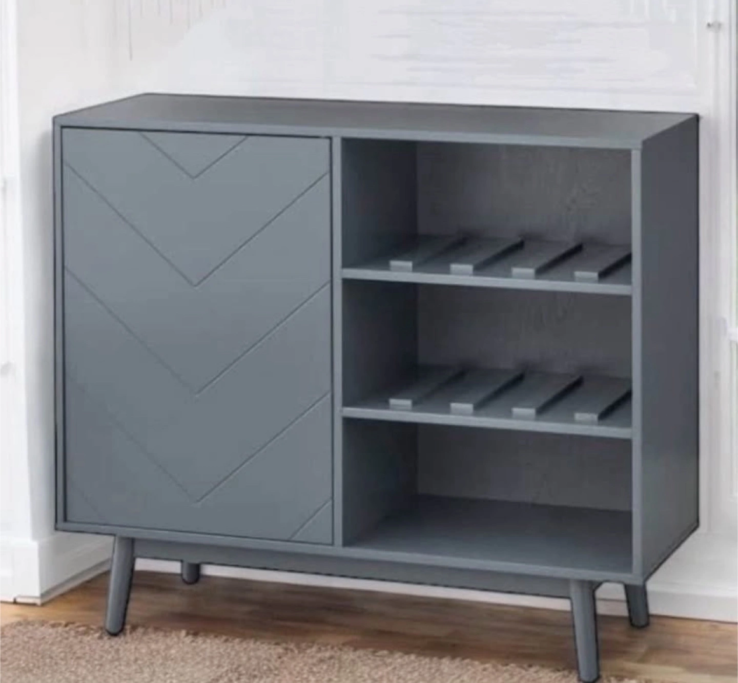New Grey Gray Mid Century Modern Wine Storage Buffet Server - Brand New! Dimensions: 42.25” W x 36.25” H x 15.75” D Interior dimension of left side without shelves: 27.5” H x 20.25” W x 15.5” D Interior dimension of right side without shelves: 27.25” H x 20.25” W x 15.5” D Floor clearance: 7.5 inches Brand New In The Box Still So It Is In EXCELLENT CONDITION! Trusted Seller - Read / See My Reviews