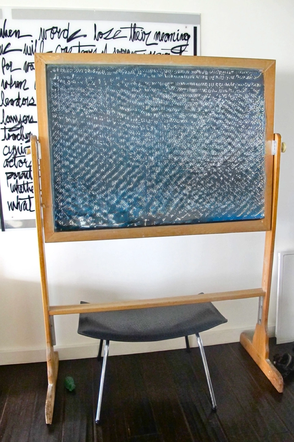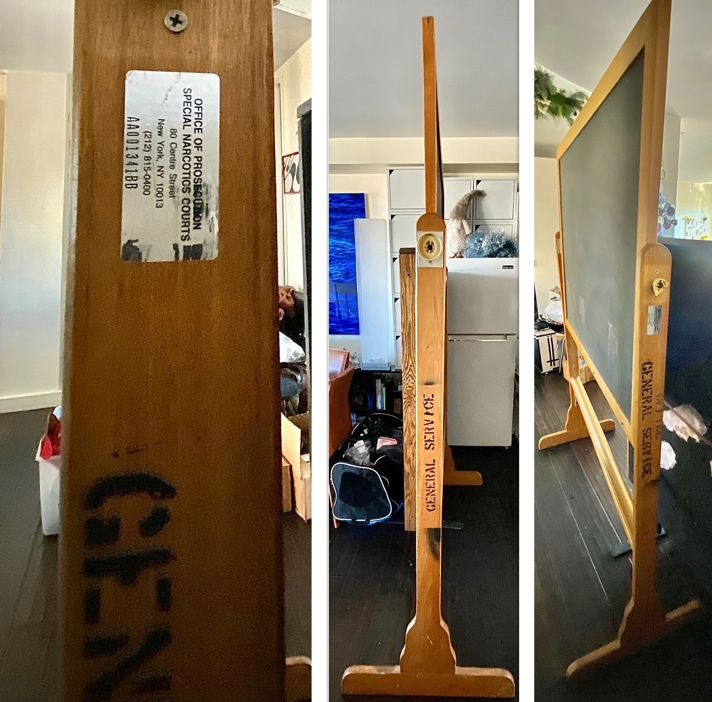 Previously owned by NYC NARCOTICS UNIT! Style, History, and an undeniable Cool Factor to your home decor. Scribble daily affirmations, Create a permanent artwork, Pictionary lovers rejoice …endless possibilities! Features: - Easy flip - Chalk tray crossbeam - Easy Assembly - One end cap is superficially damaged but still does it's job as an end cap