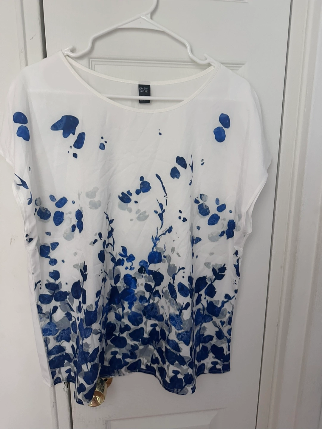 Women's XL blouse. White top with blue floral print. Short sleeves.