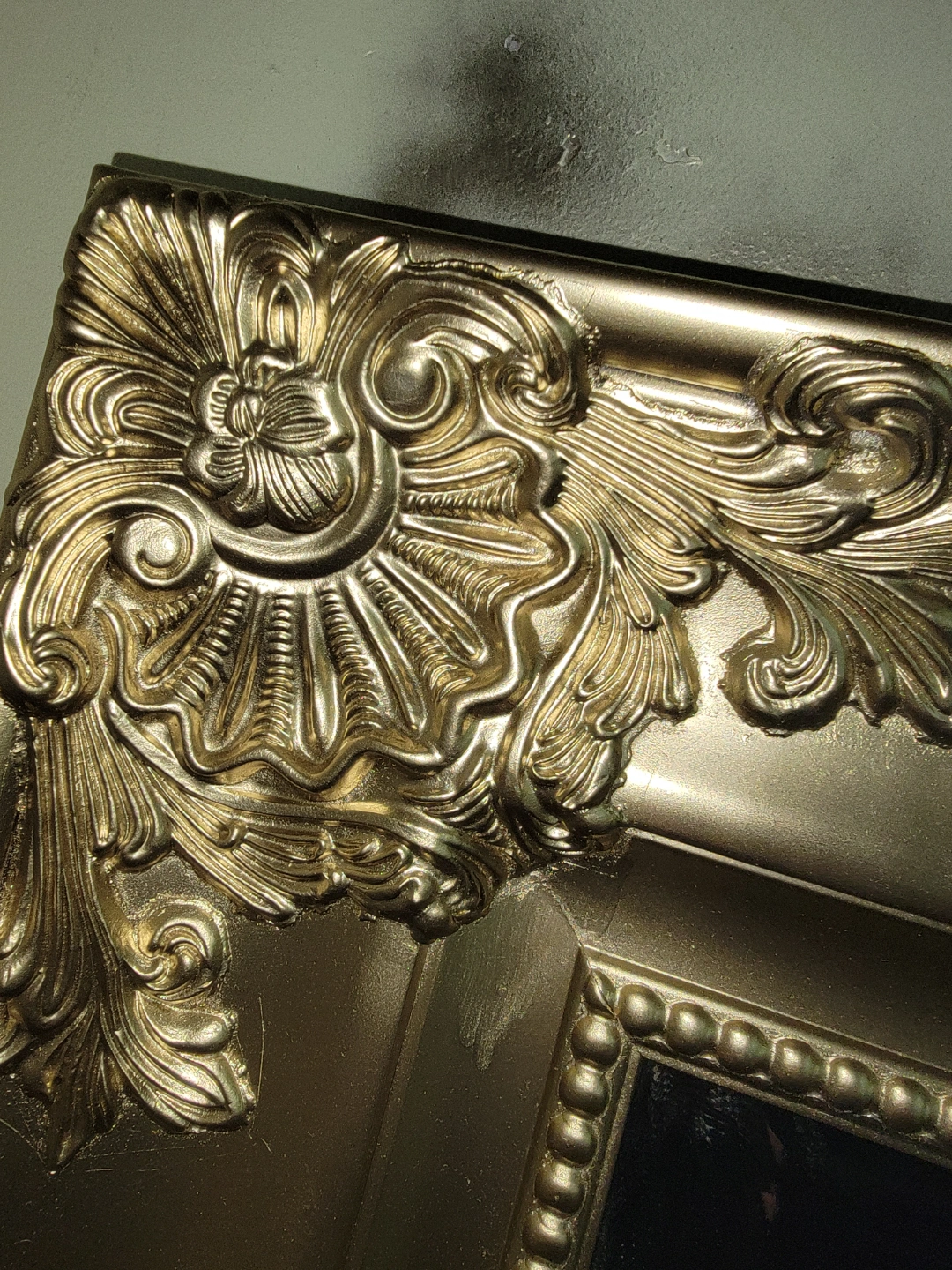 Large gold ornate mirror. Beautiful gold frame. Perfect for entryway or bedroom. Minor wear.