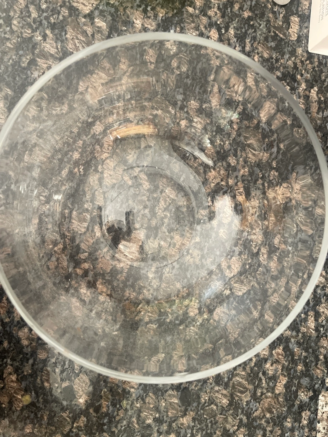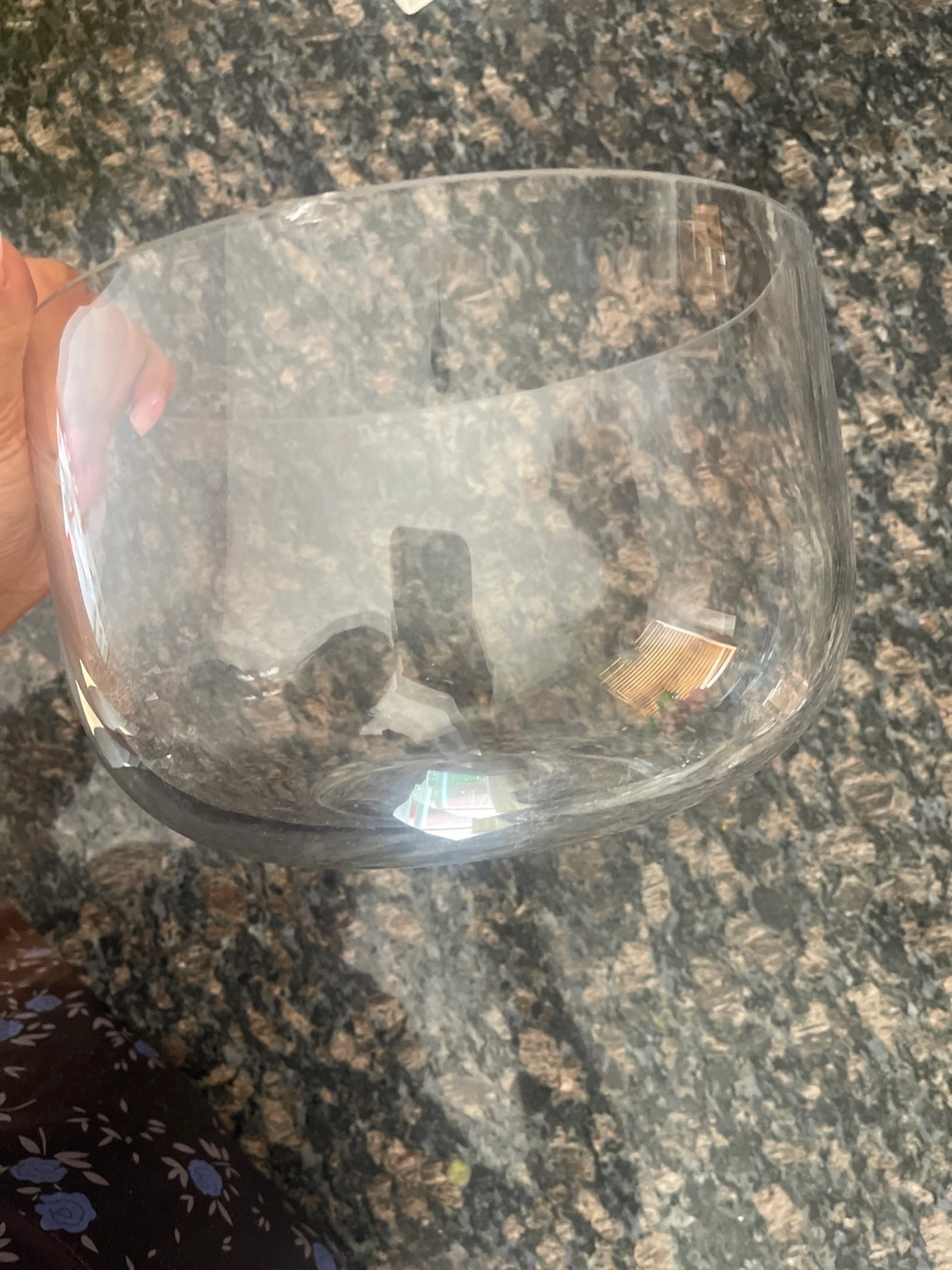 Large, clear glass bowl. Perfect for serving or decoration. Slightly curved sides. No chips or cracks visible.