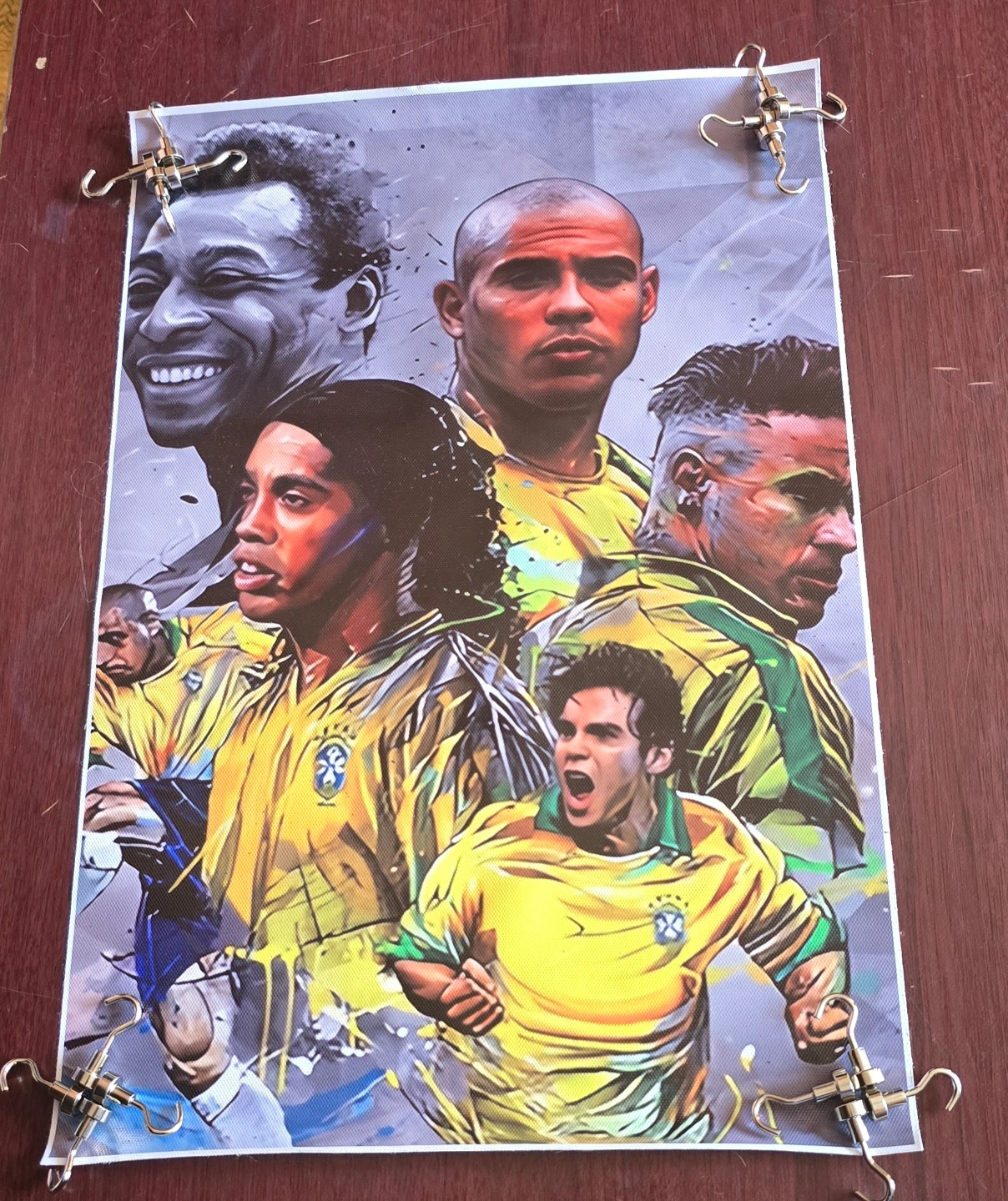 10Large format print featuring iconic Brazilian soccer players. Vibrant colors and dynamic design. we frame for free.