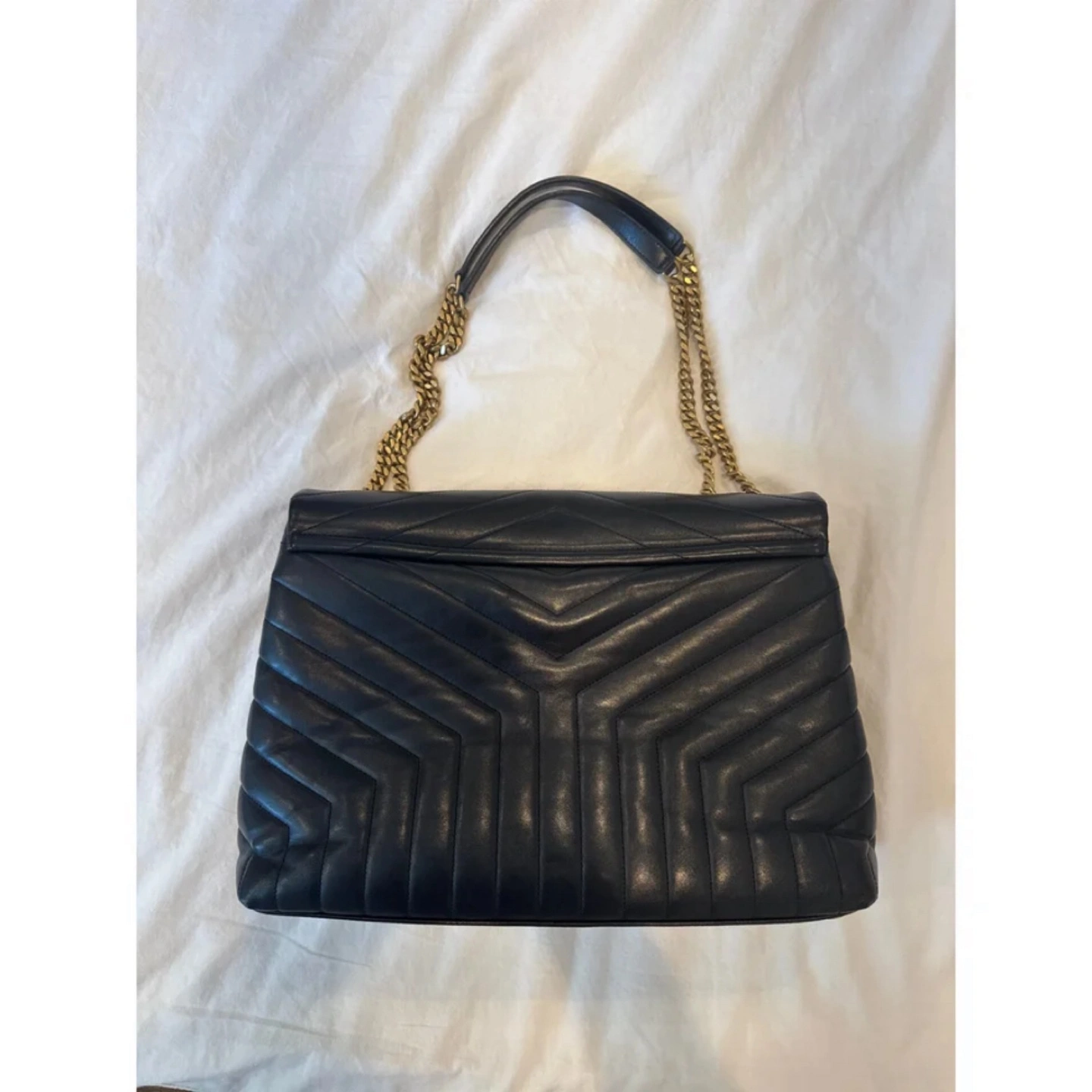 Gorgeous black leather bag. Features gold chain strap and YSL logo. Multiple interior compartments. Pre-owned.