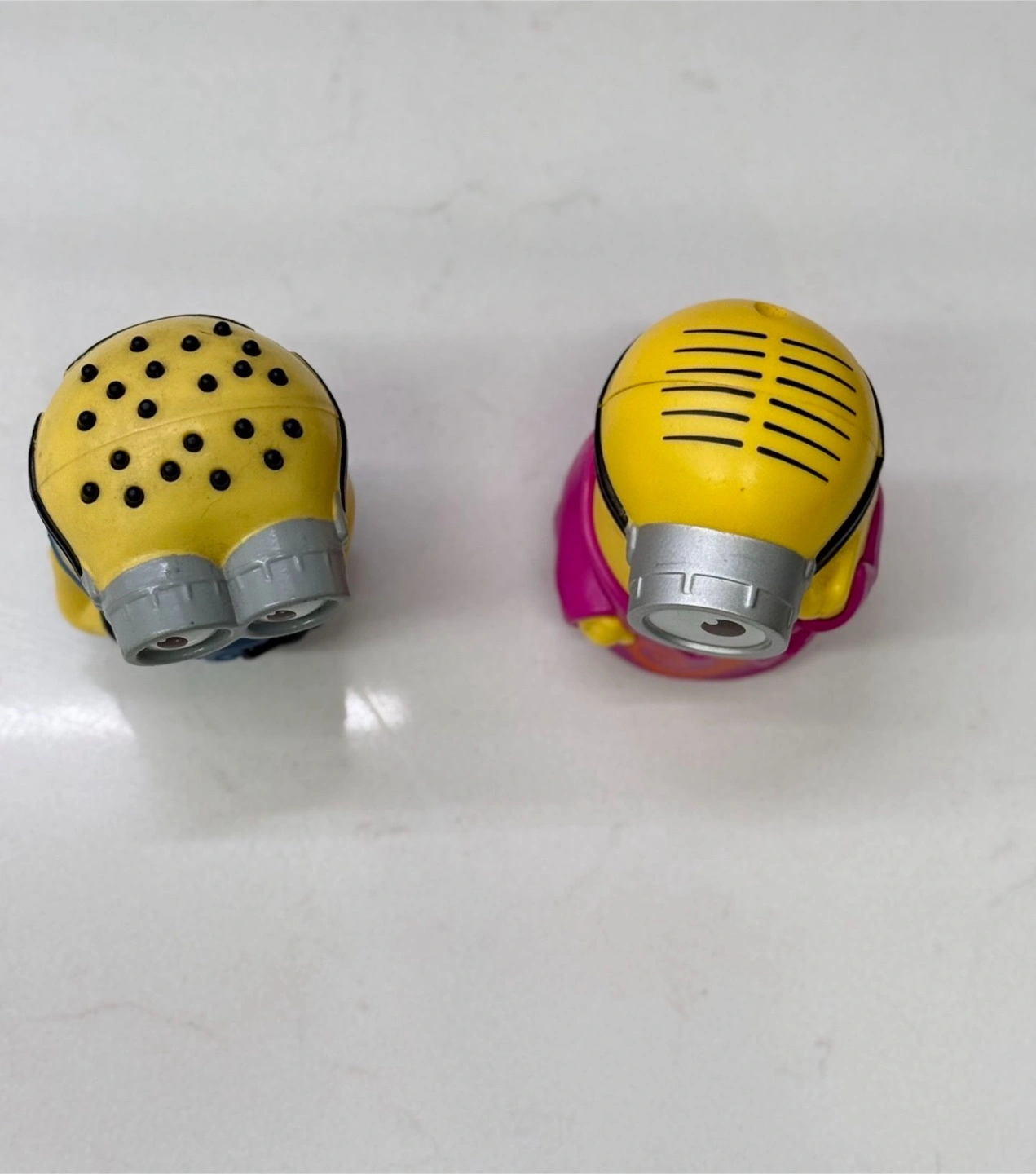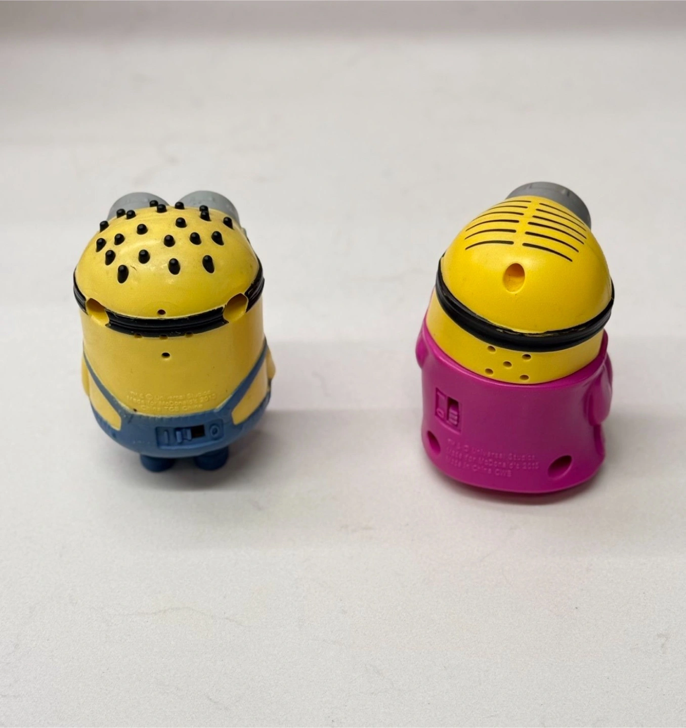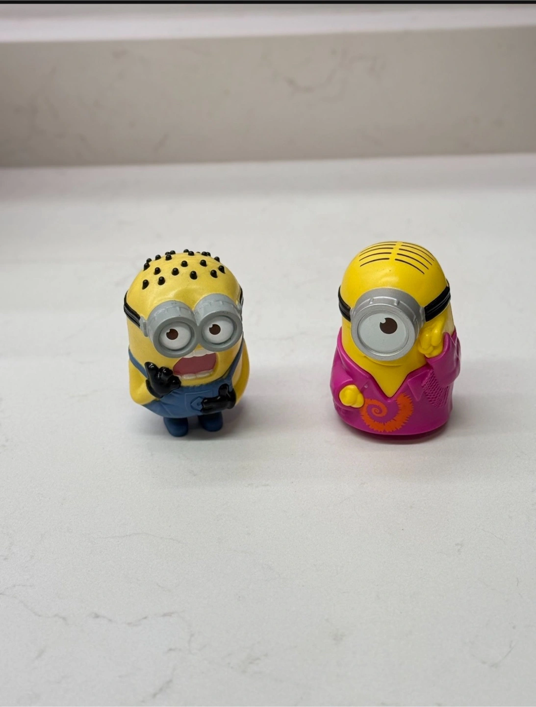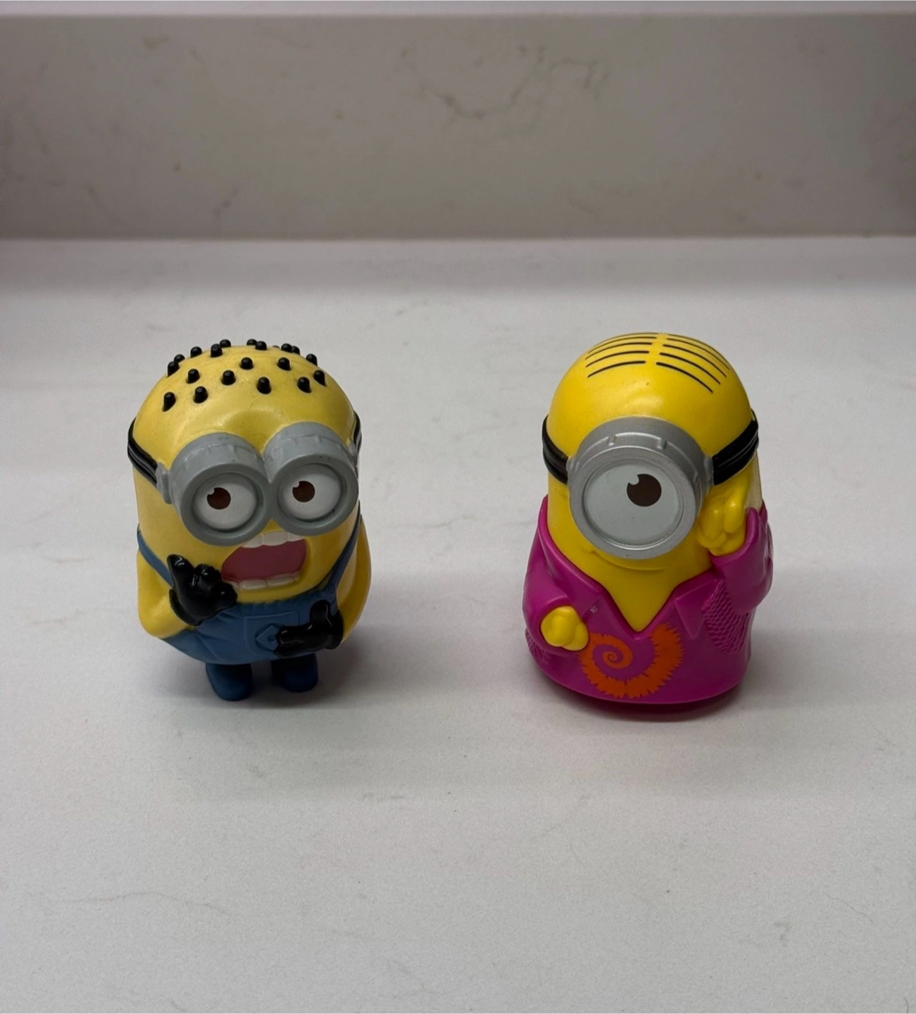 1000+Two small plastic Minions toys. One wears a purple shirt. Great for collectors or kids.