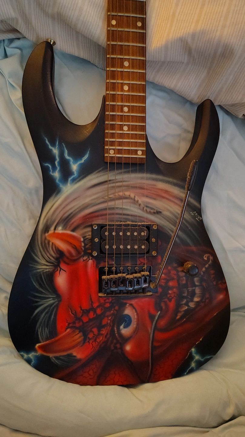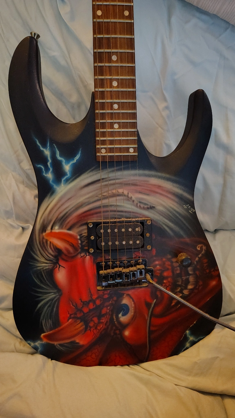 232Electric guitar with custom Iron Maiden paint job. Includes tremolo bar. Made in China. no case included. not desperate to sell. but money talks