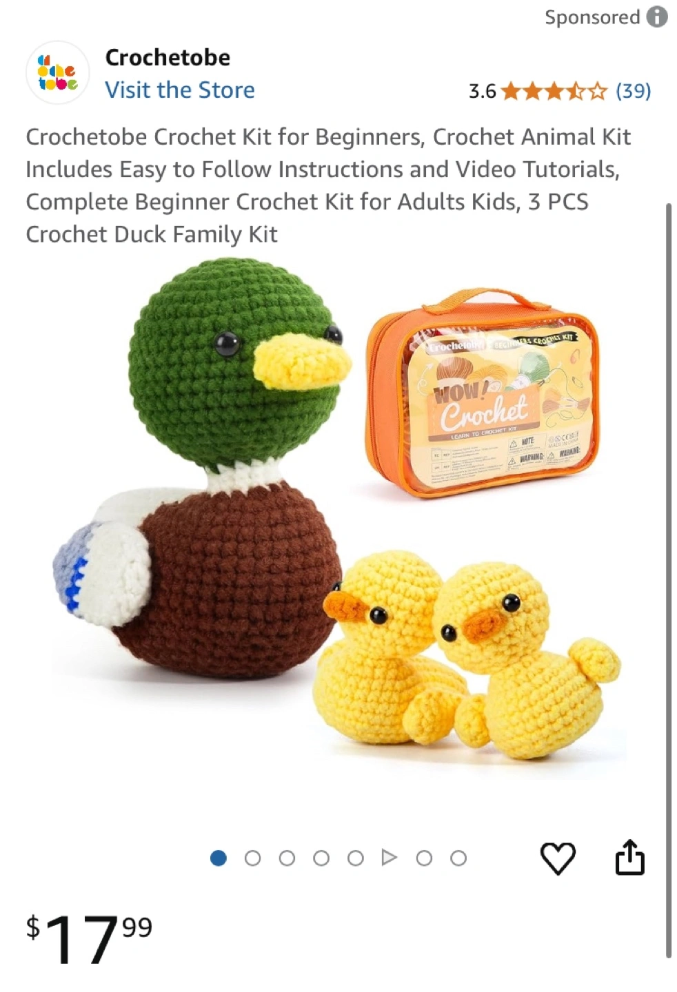 1000+Beginner crochet kit. Includes instructions and video tutorials. Make three crocheted ducks. Great for adults and kids.