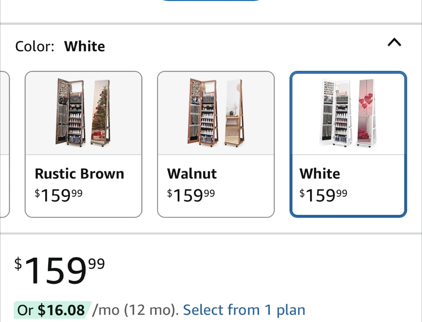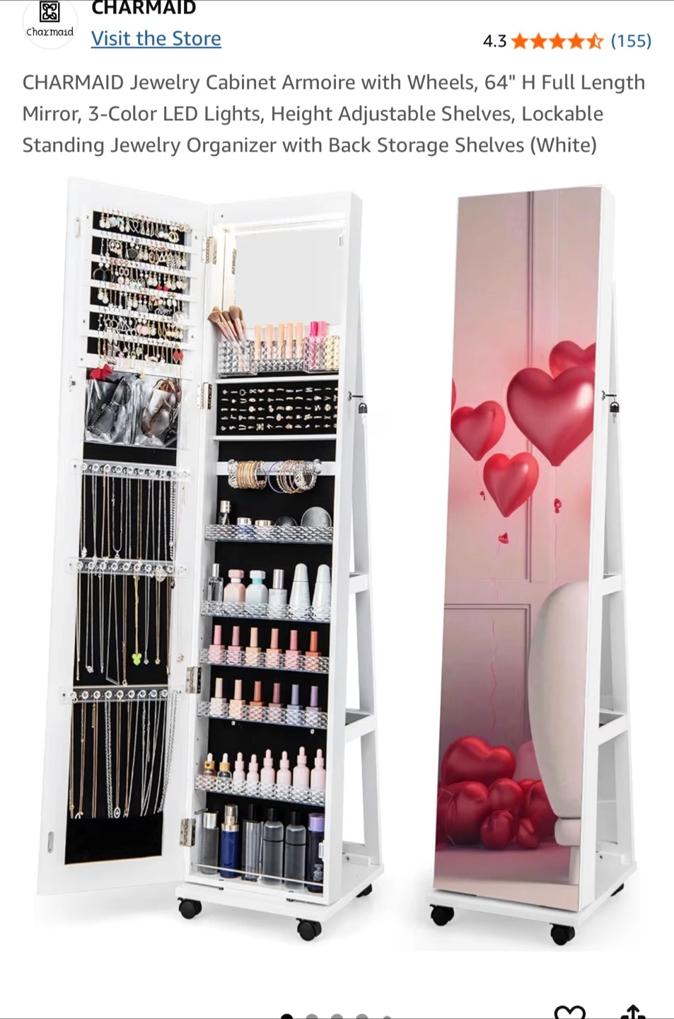 Buy & SellJewelry cabinet with Mirror - WhiteJewelry cabinet with Mirror - White$5564" tall full-length mirror. Height adjustable shelves. Lockable. Wheels. Back storage shelves. White.ConditionLike newDimensions61.5” x 14.5”8 chats·8 favorites·127 viewsSELLERverifiedLisaWashington Heights681 reviewWHERE TO MEETWashington heights