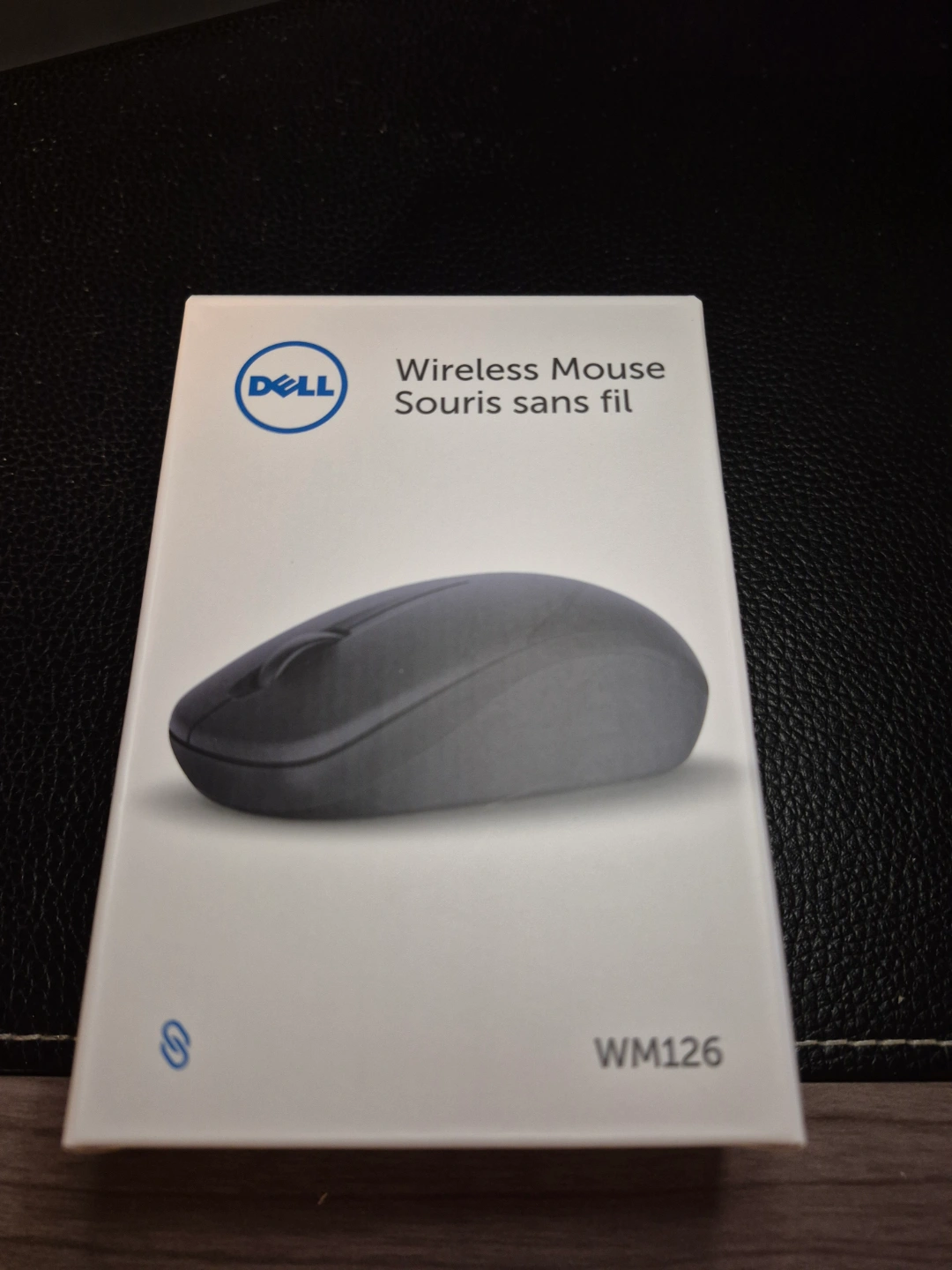 New Dell WM126 wireless mouse. USB receiver included. Compact design. Great for laptops and desktops.