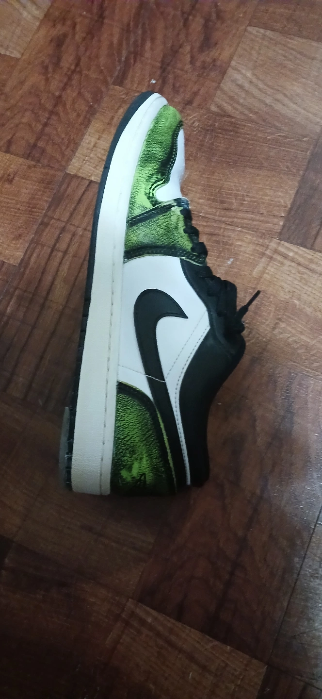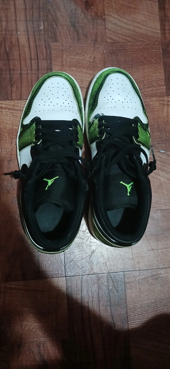 1000+Used Nike Air Jordan 1 Low. Green and white colorway. Low-top sneakers. The sneakers are clean and disinfected