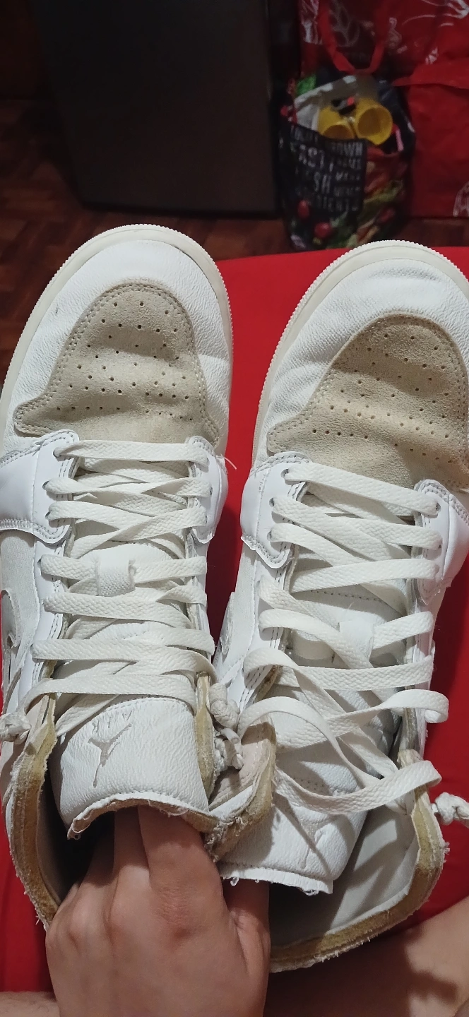 1000+Air Jordan 1 High OG sneakers. Size US 10. Light Bone colorway. The sneakers are clean and disinfected